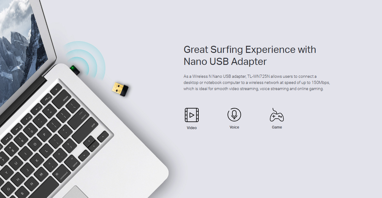 - Connects laptops and PCs to Wireless N networks via USB