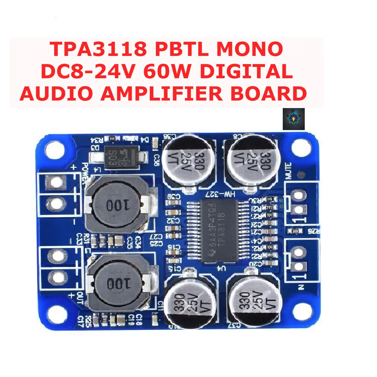 - TPA3118 PBTL Mono DC 8-24V 60W Digital Audio Amplifier Board AMP Module Chip Replacement Universal