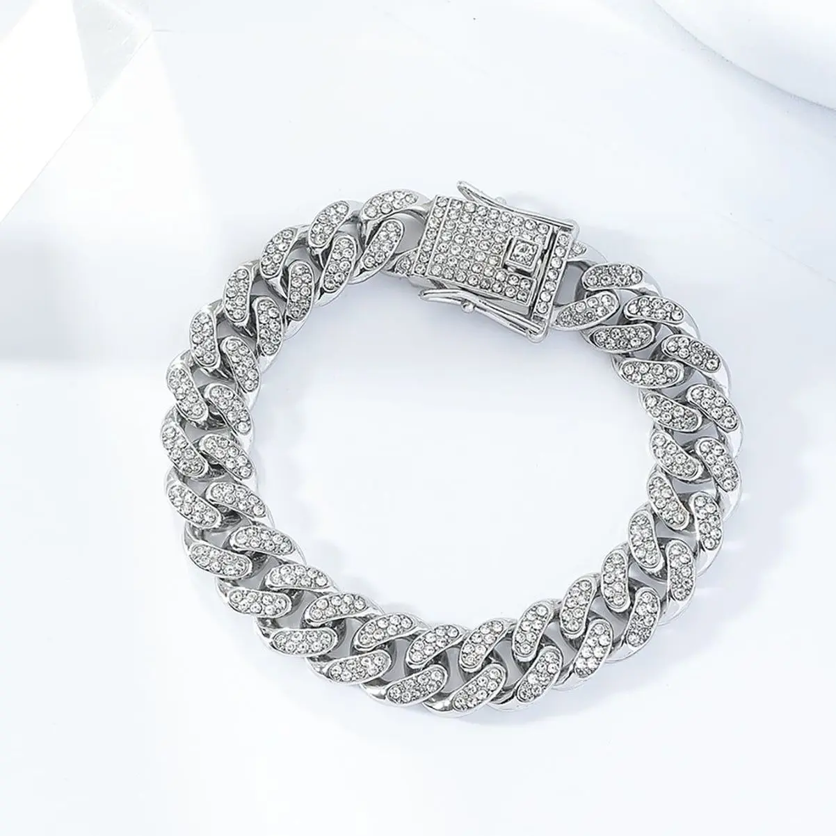 Features: Cuban Link Chain, Rhinestone Inlaid, Wrist Decor