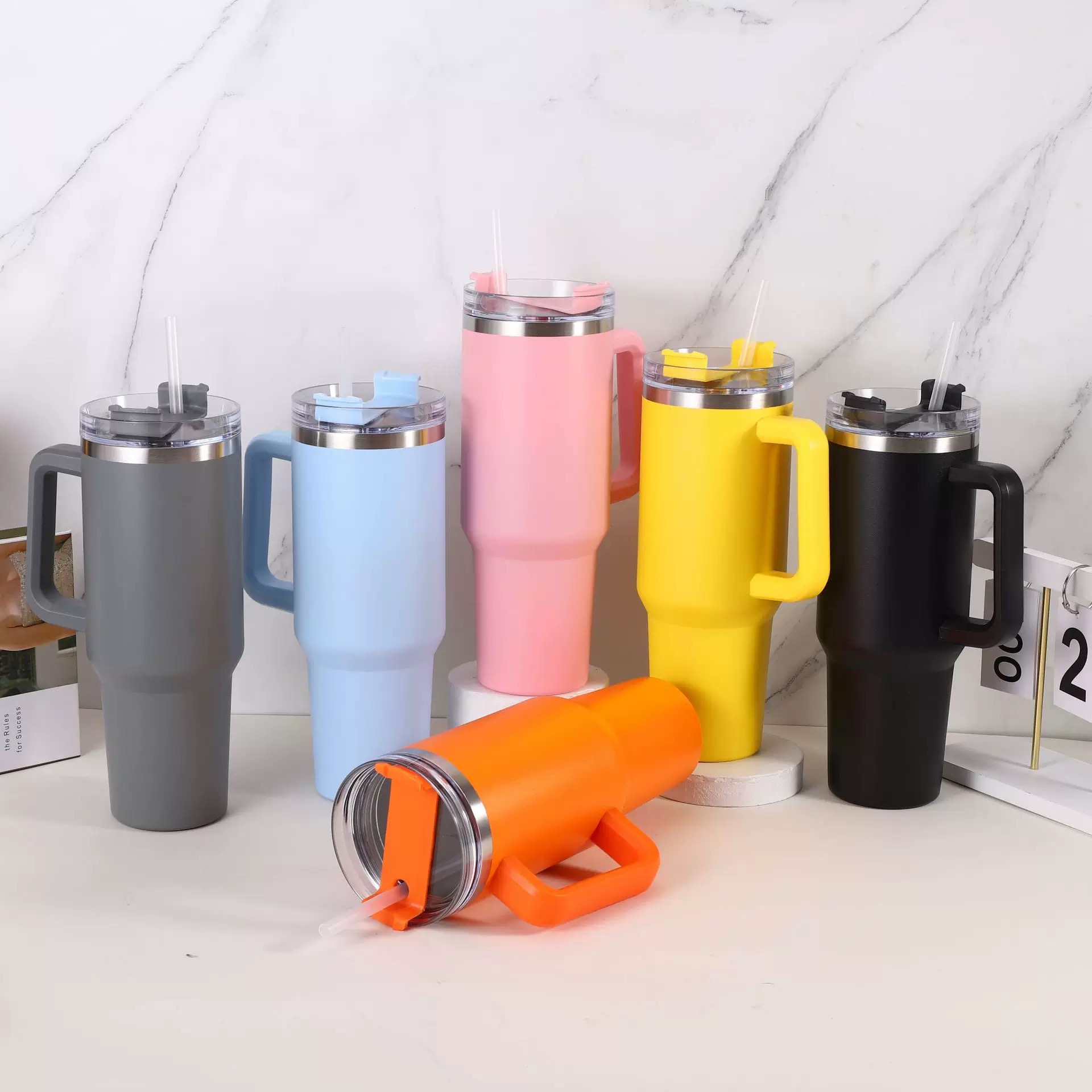 Trendy 40 oz Insulated Tumbler with Handle and Straw for Daily Life Travel Iced Coffee Cup Reusable Stainless Steel Insulated Water Bottle 1183ml(Light blue)
