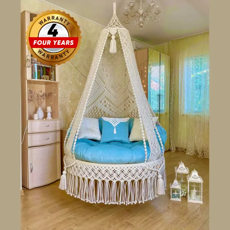আপনার ঘর বা বারান্দার আভিজাত্য বাড়াতে নিয়ে এলাম প্রিমিয়াম কোয়ালিটির হাতে বোনা ম্যাক্রেম কটন সুইং দোলনা। বিকেলের অবসরে বই পড়া, প্রিয়জনের সাথে আড্ডা দেওয়া কিংবা একটু শান্তির ঘুমের জন্য এই দোলনাটি হবে আপনার সেরা সঙ্গী।
