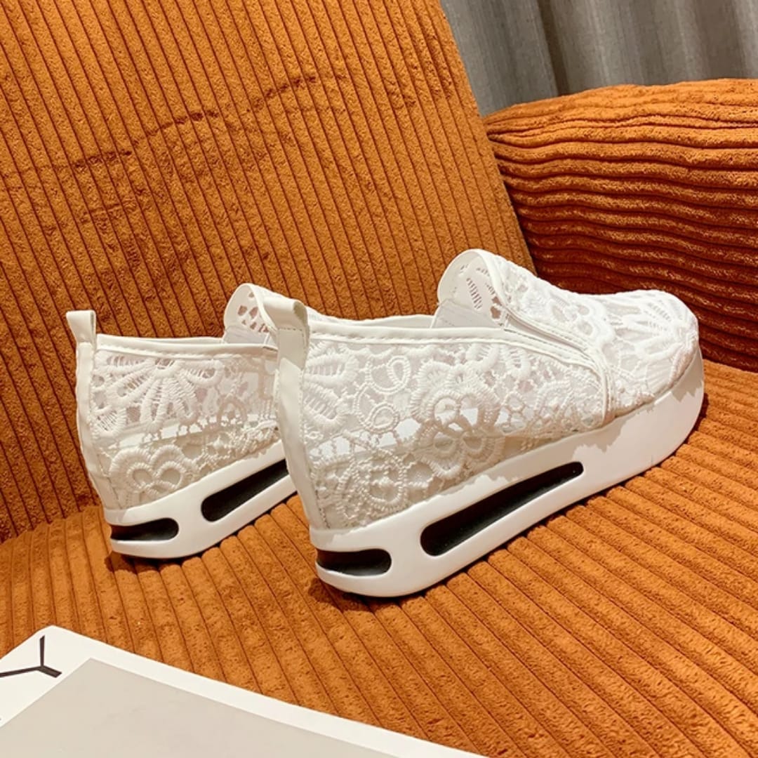 Trendy breathable lightweight fashion elegant drop shipping mesh upper thick sole sports casual shoes for ladies.