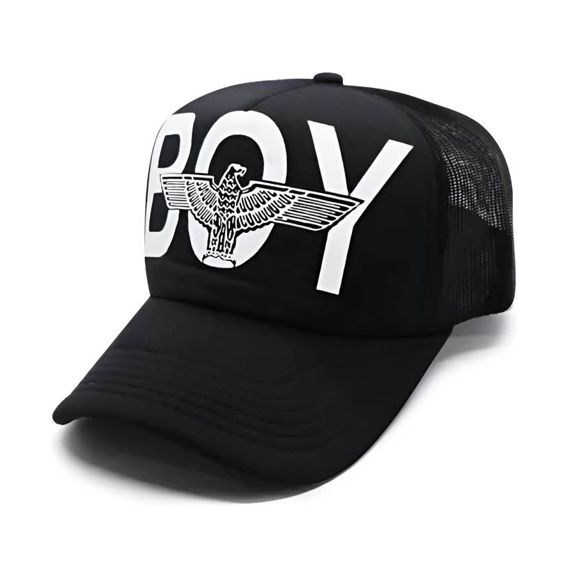 2. BOY ঈগল লোগো ক্যাপ (BOY Eagle Logo Cap): ক্লাসিক স্ট্রিটওয়্যার লুকের জন্য উপযুক্ত। বড় BOY লোগো এবং এর মাঝে ঈগলের ডিজাইন আপনার পোশাকে একটি বোল্ড এবং ফ্যাশনেবল ভাইব দেবে।