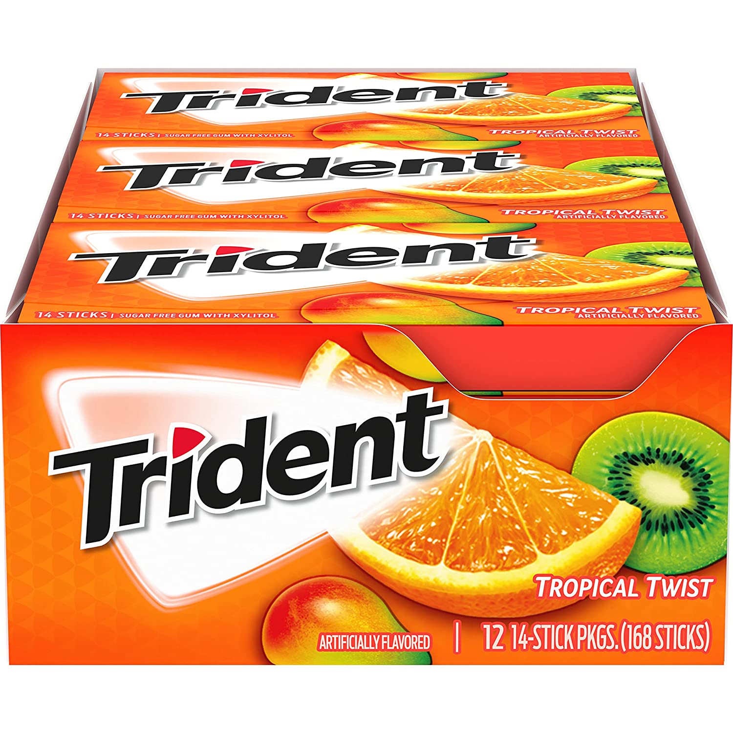 Trident Tropical Twist Sugar Free Gum 12 Packs of 14 Pieces (168 Total Pieces)
