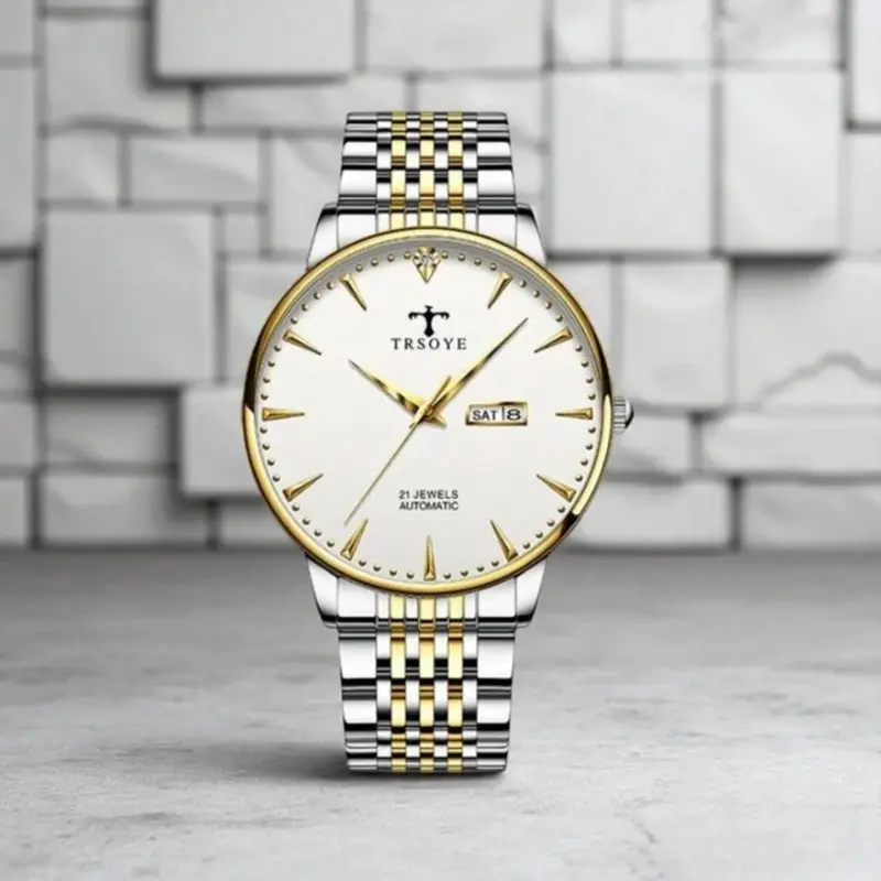 Trsoye 881 Premium Water Resistant Watch আভিজাত্য আর আধুনিকতার এক অনন্য সংমিশ্রণ! ঘড়ির বৈশিষ্ট্য: 30M (3 Bar) ওয়াটার রেজিস্ট্যান্ট হয়, যার জন্য এটি হাত ধোয়া বা হালকা বৃষ্টির পানি সহ্য করতে পারে, তবে সাঁতার কাটার জন্য উপযোগী নয়।এতে মিনারেল গ্লাস ব্যবহার করা হয়েছে যা সহজে স্ক্র্যাচ পড়তে দেয় না।এটি একটি Quartz (কোয়ার্টজ) মুভমেন্টের ঘড়ি, যা ব্যাটারিতে চলে এবং সঠিক সময় দেয়।এতে এনালগ ডিসপ্লে রয়েছে এবং ৩টা ঘরে সপ্তাহ (Day) এবং তারিখ (Date) দেখার উইন্ডো আছে। এটা কেন কিনবেন?স্টাইলিশ এবং রাফ ডিজাইন।মাল্টি-ফাংশনাল ফিচারস।টেকসই বিল্ড কোয়ালিটি।