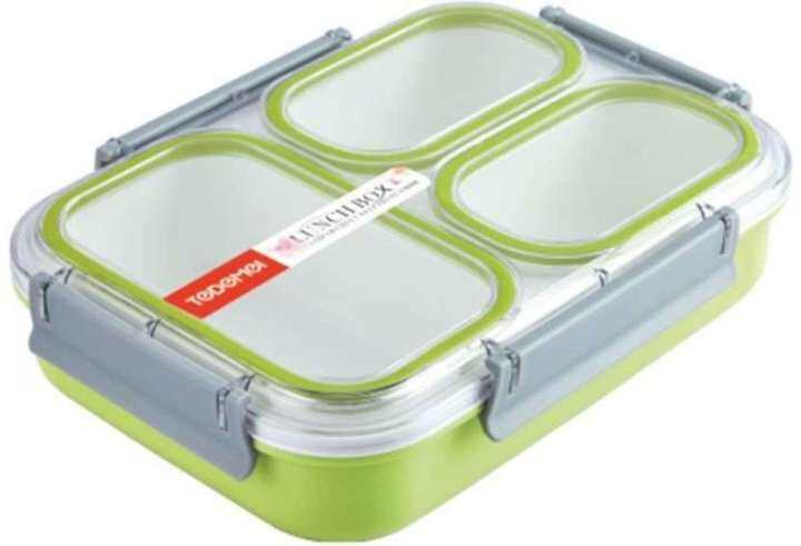 oduct details of Tuelip Plastic Grid Lunch Box With 3 in 1 Slots Leak Proof Durable Green (1.35 LTR) 3 Containers Lunch Box (1350 ml)