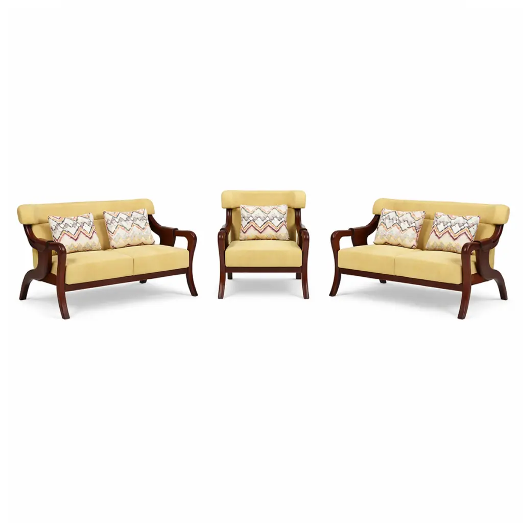 Solid Seasoned Mahogany Wood, Semi Soft Rubber foam, Walnut Colour Lacquer Finish, Foreign Fabrics (Fabric can be Customised).