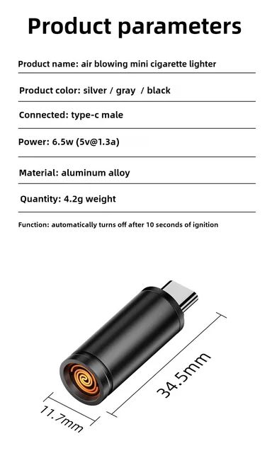 Product details of Type-C OTG Blowing Cigarette Lighter - Plug & Blow Smokeless Heater for Mobile Use