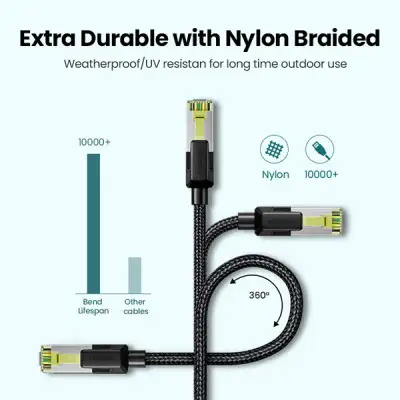 The Ugreen NW150 (10643) Cat-7 F/FTP 15 Meter Black Braided Network Cable offers ultra-fast internet speeds and a durable design. This cable is perfect for gaming, streaming, and large data transfers. With its Cat-7 rating, it supports speeds up to 10Gbps.
