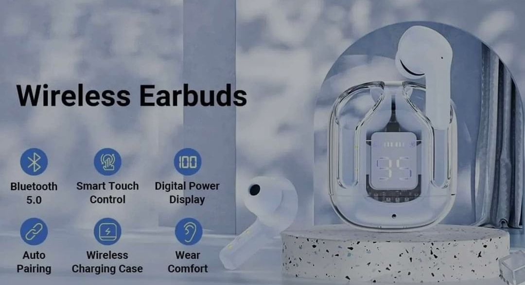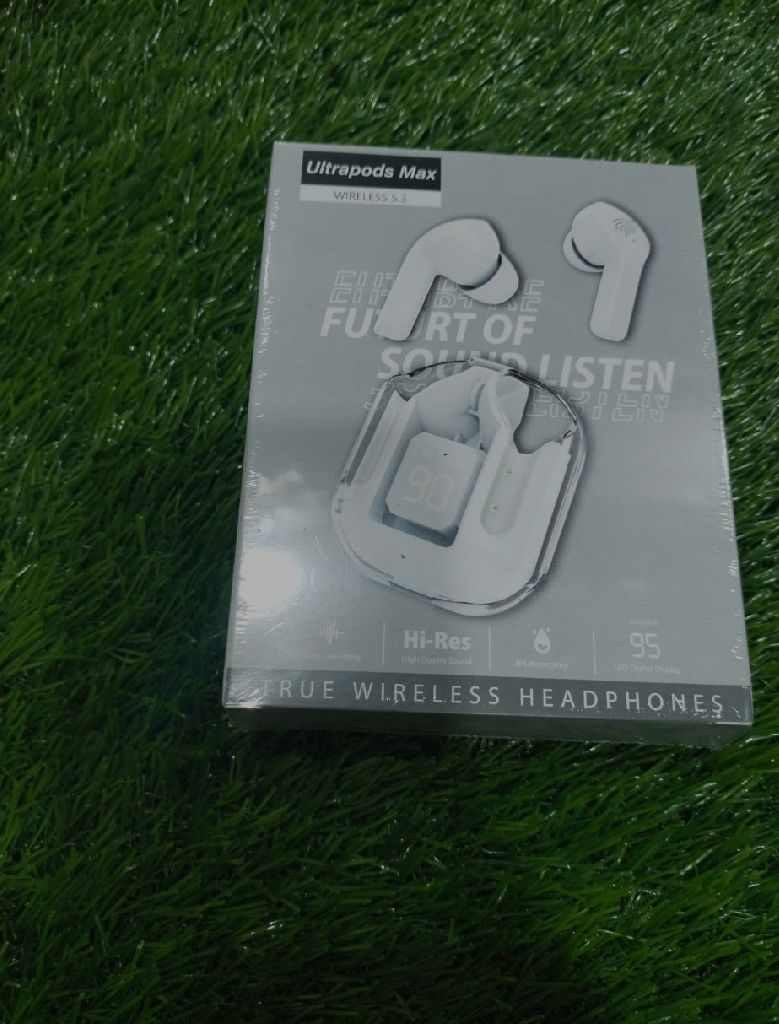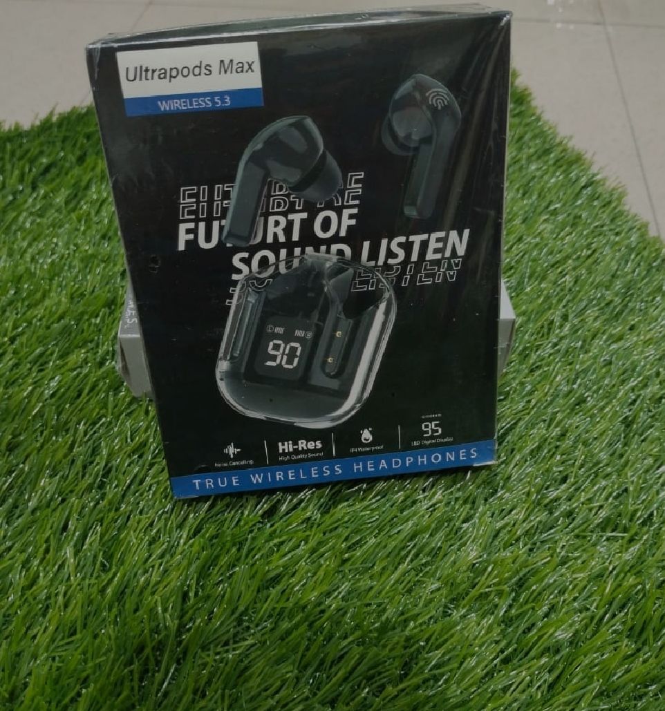 Original T2 UltraPods Max TWS Headphones 5.3, the the ultim ultimate wireless earphones with Bluetooth connectivity and auto noise cancelling. These on-ear headphones feature a 3D display resolution and transparent case, delivering HiFi stereo sound for an immersive listening experience. With sweat-proof and water-resistant design, along with noise isolation and cancellation, these headphones are perfect for active lifestyles. The built-in microphone ensures seamless communication, while the Type C port and WIFI + Bluetooth connectivity offer versatile usage. Upgrade to the Generation 2 (Gen-2) T-2 UltraPods pro Max Tws for an unparalleled audio experience.