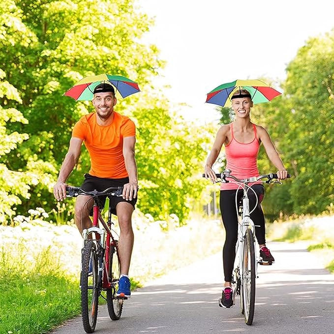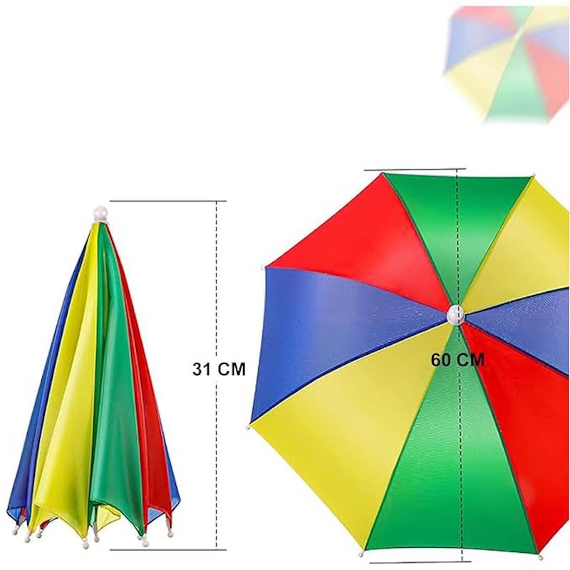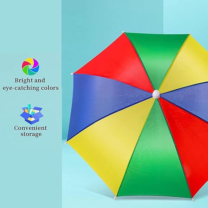 This Rainbow Umbrella Hat Folds Up Just Like An Umbrella For Easy Travel. There Is An Adjustable Elastic Inside For All Head Sizes. Comfortable Fit. Elastic Headband Fits Nearly All Head Sizes With Ease. Great For ChildrenKidsAdultStudent. Practical Design Keeps You Dry While Keeping Your Hands Free. Perfect For Keeping Your Head Dry On Rainy Days Or Keeping It Shaded On Sunny Days.