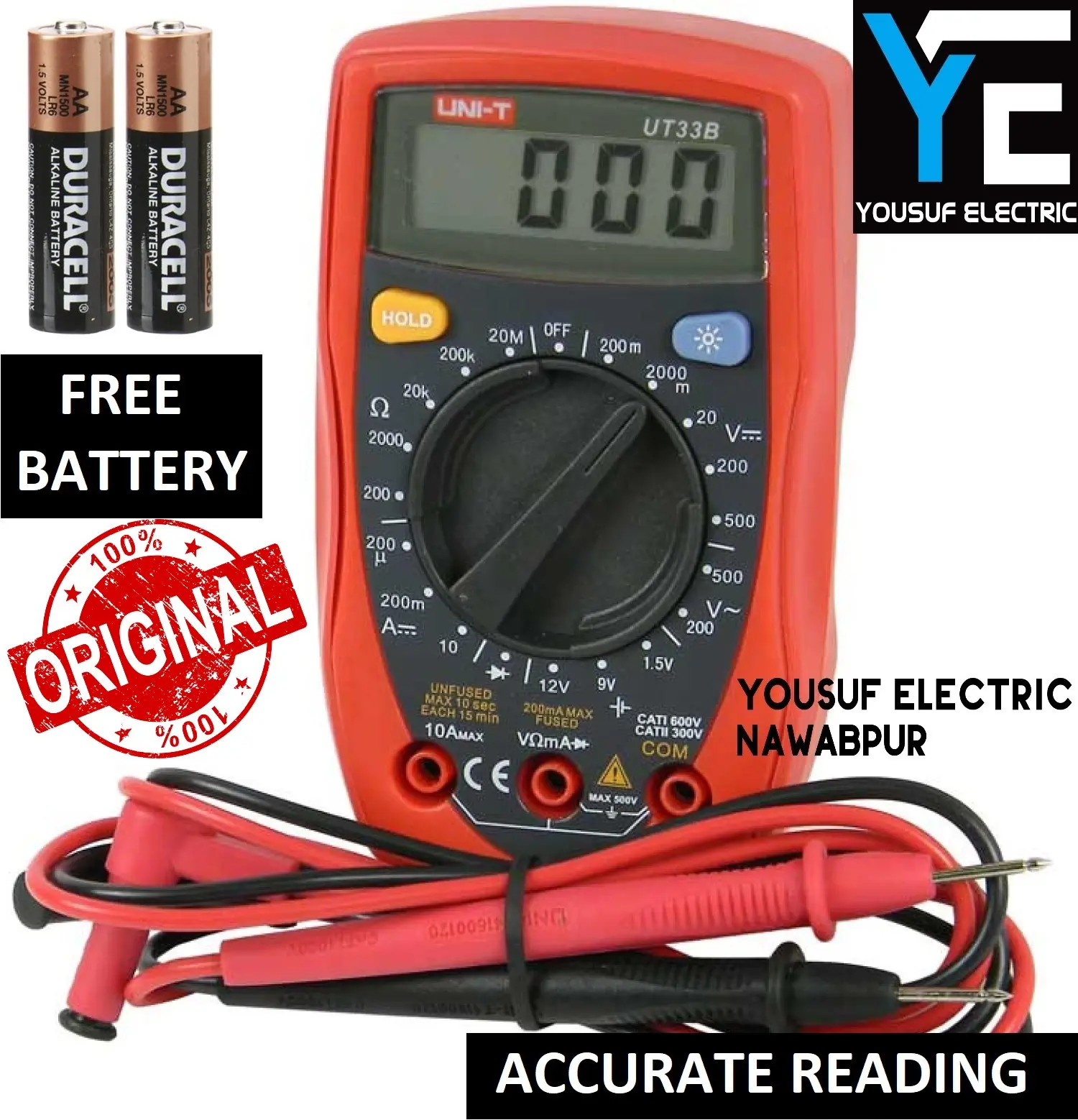 - UNI-T UT33B+ Digital Multimeter Current AC DC Voltage Resistance Diode Battety Tester LCD Backlight