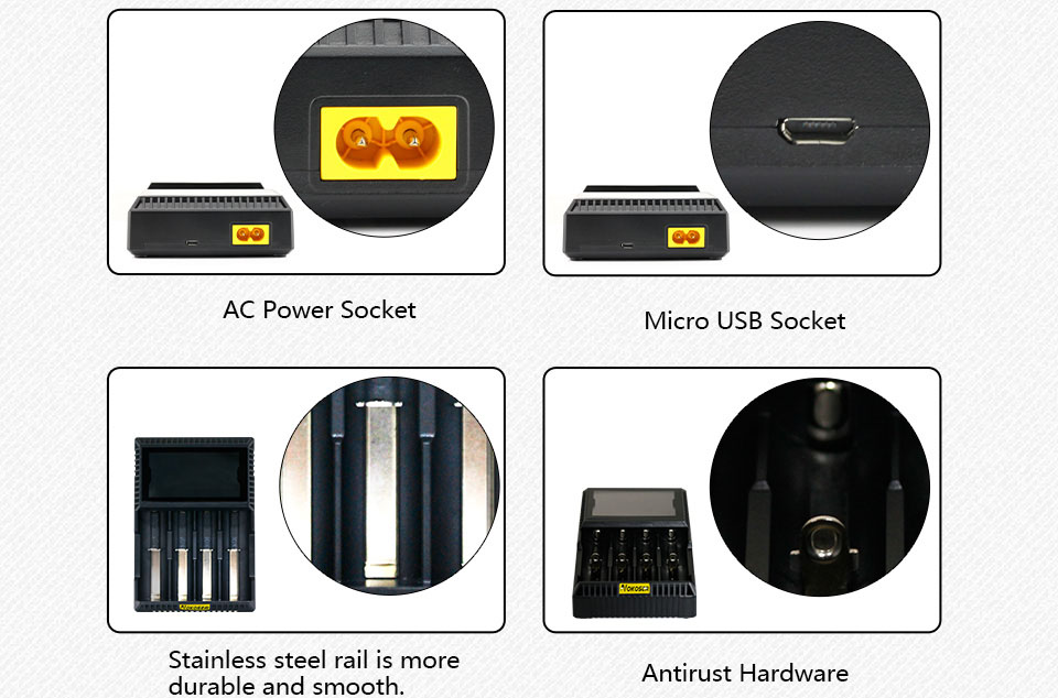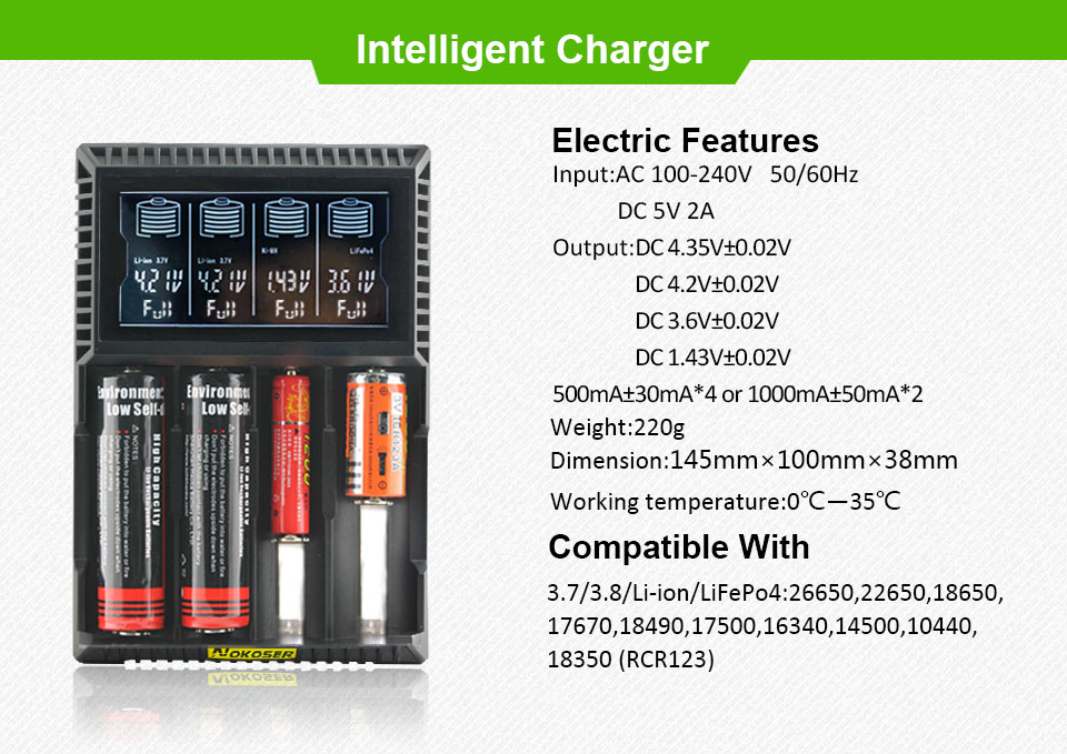 NOTE:26650 battery can only be placed on the left and right sides of the card slot charge