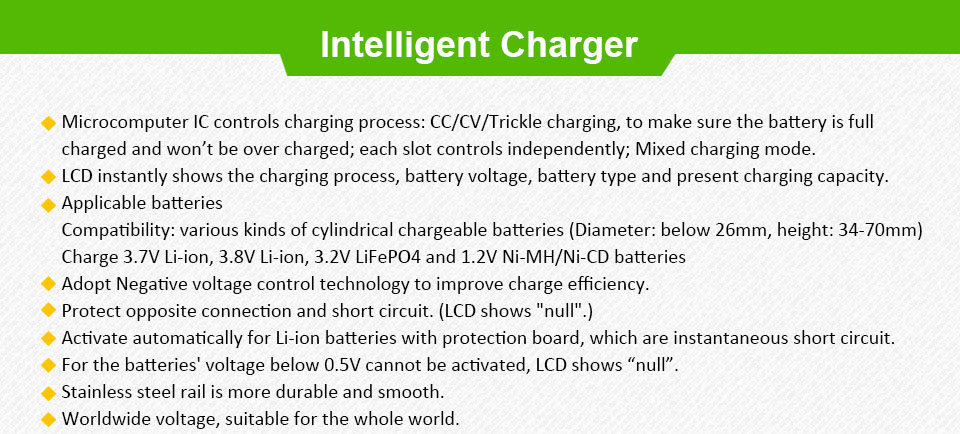 6. Activated automatically for Li-ion batteries with protection board, which are instantaneous short circuit
