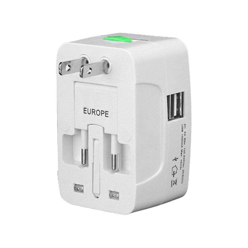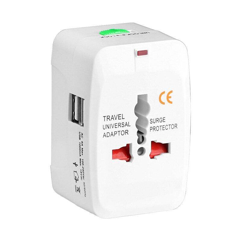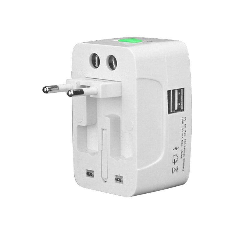 Features:* 2 USB port (1000mA) can be used for charging mobile phone,digital camera,mp3,iPod,iphone etc.* 2 Dual USB charging ports with maximum current 1A.Charging current will be matched automatically.* Built-In safety shutters protect users from the direct touch of the live parts on the socket outlet.* Cover more than 150 Countries with US/EU/UK/AU plugs.Volts:100-240 V,Current Rating:6A.* This universal plug adapter is not a converter,it just converts the power outlet plug type only, it does NOT convert electrical output current and voltage. Please make sure your device carries a electrical converter when you travel to other countries with different electrical output.Description:* All in one adaptor with surge protector, safety shutter and power indicator light.* It provides a child protection safety shutter, power indicator light and surge protector.This item will fit the plugs in Europe,UK, USA,China,Japan, Australia,Spain and almost every country in the world.* 2 USB charging ports. 2 USB charging ports provides total 1A Output. Charging current will be matched automatically.compared to most 300-500mA USBs,it shortens your charging Period to a half.Do NOT use with Hair Dryers, Curling Irons or any electric appliance whose power is higher than 600W.* It protect your valuable electronic appliance from spikes and surges.It accepts earthed and unearthed plugs from dozens of countries.Specifications:Volts:100-240V.Current rating: 6A.Colour: WhiteSize: 8 * 4.8 * 4cm / 3.15''*1.89''*1.57''(L*W*H)No Retail PackagesQuantity: 1Set