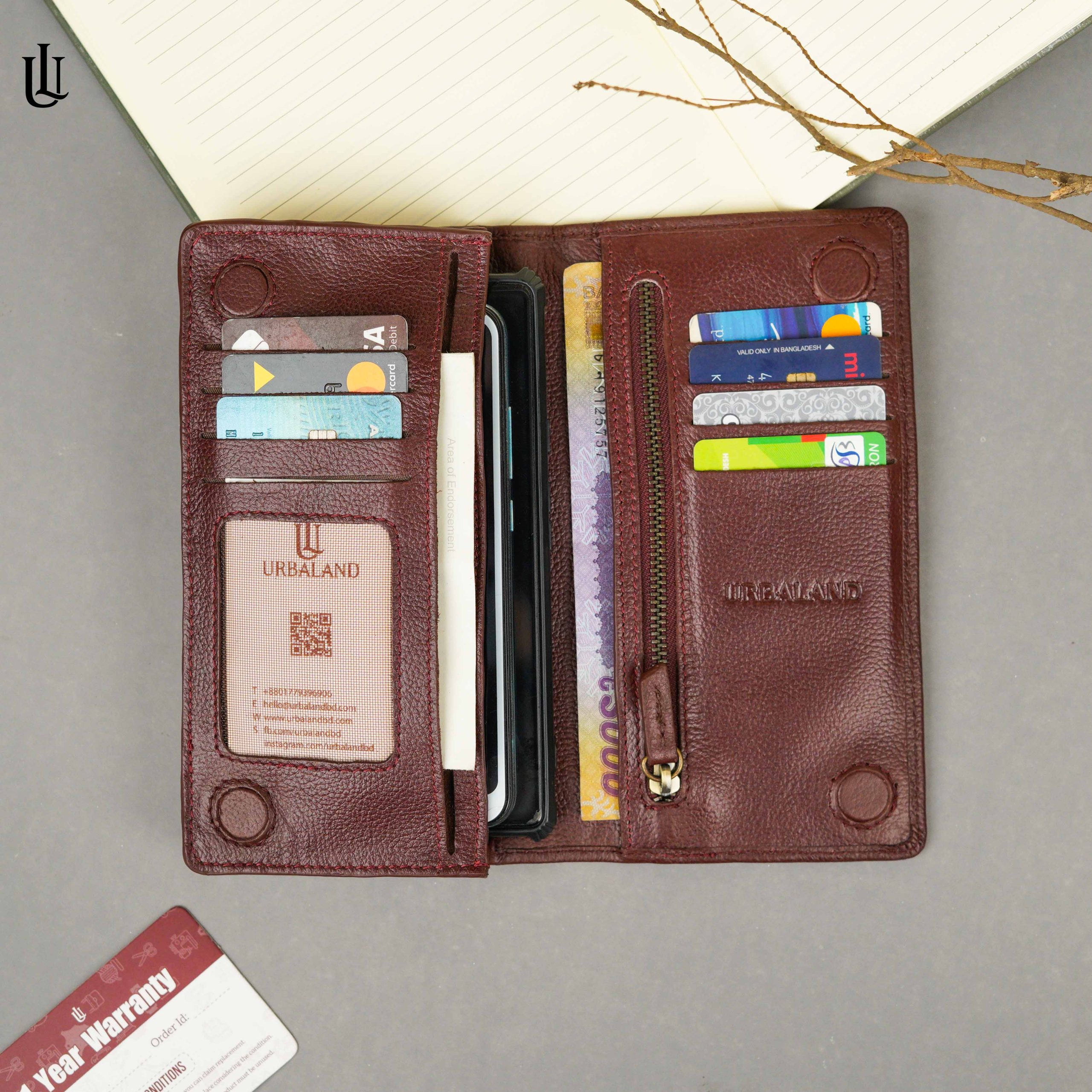 Urbaland Kane Double Original Leather Long Wallet – Red Wine