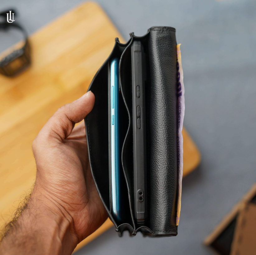 Wane ওয়ালেটটা বেশ spacious। একদম practical এবং কমপ্যাক্ট! এতে আছে ৬টা কার্ড স্লট, ১টা চেইন পকেট, ১টা ক্যাশ চেম্বার ২টা কয়েন পকেট। Height ৭.৫″ × Width ৪″