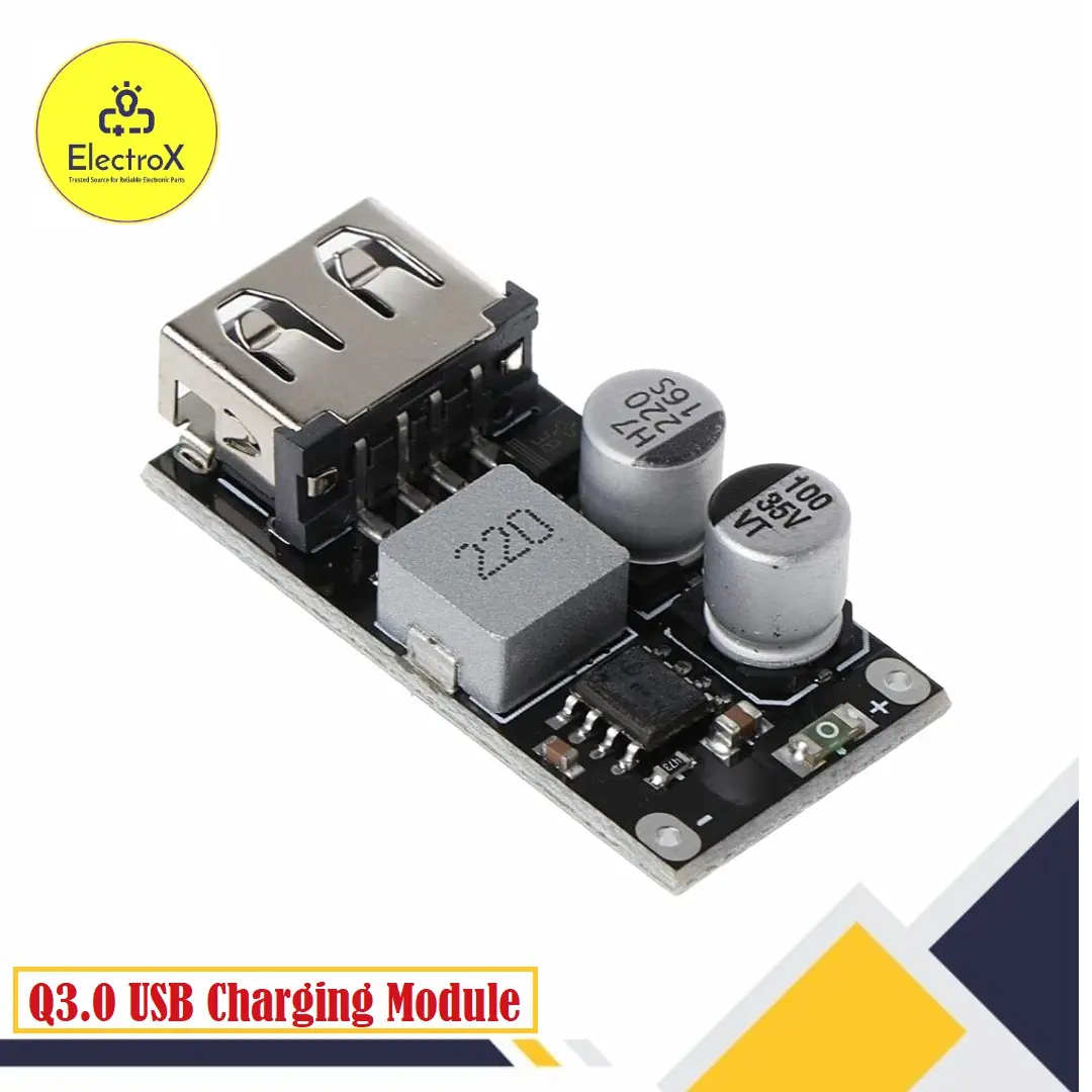 The Q3.0 USB DC-DC Step Down Buck Converter Charging Module is a compact and efficient power supply device designed for electronic projects and applications. This module is equipped with a high-performance buck converter that efficiently steps down voltage from a higher source to a lower, more manageable level. With its USB interface, it provides a convenient and widely compatible power solution.