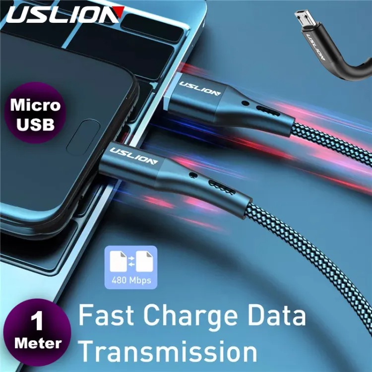 USLION 1M Micro USB Cable 3A Fast Charging Micro Data Cable For Android Mobile Phone Charger Cable Cord- Black 1M
