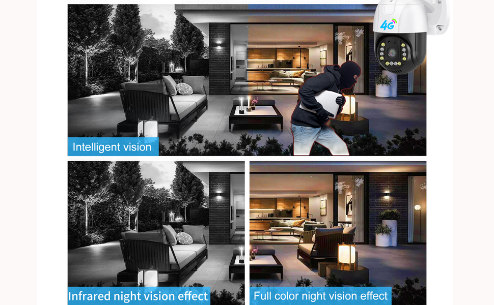 - Night vision: IR-CUT switch Automatic about 5-8meters (It varies from environment), White Led can be remote control via APP:①Turn ON ②Turn OFF ③ Auto, (In automatic mode, the infrared light will be turned ON after the IR-cut switch to night vision auto , it can intelligently detected human body, and Turn ON/OFF the White light intelligently )
