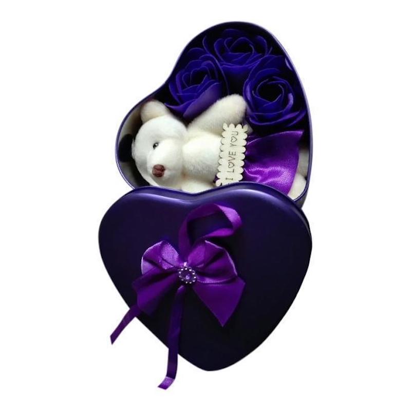 Product details of Valentine Day Love Gift -Heart Shape Gift Box (Flowers With Soft Teddy)