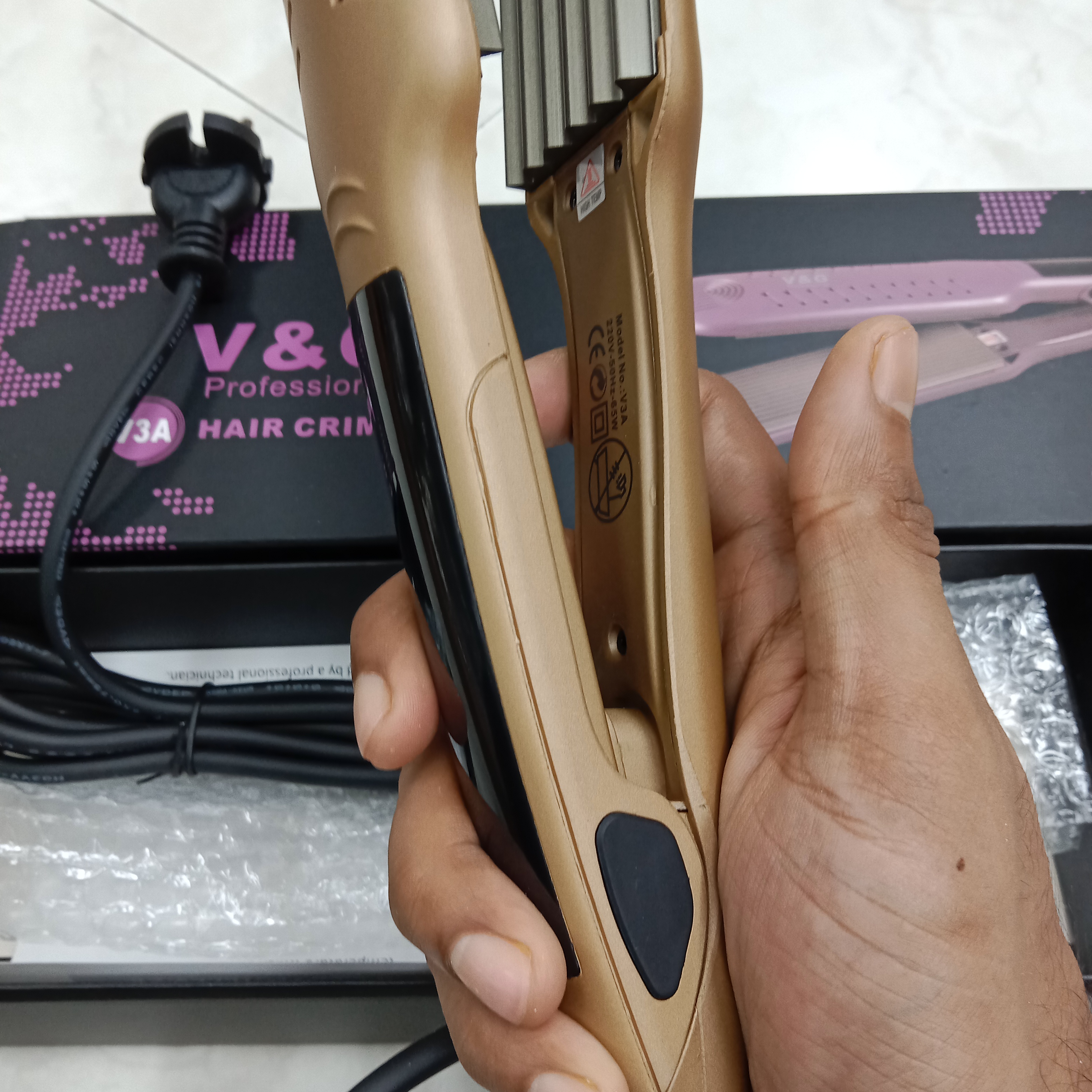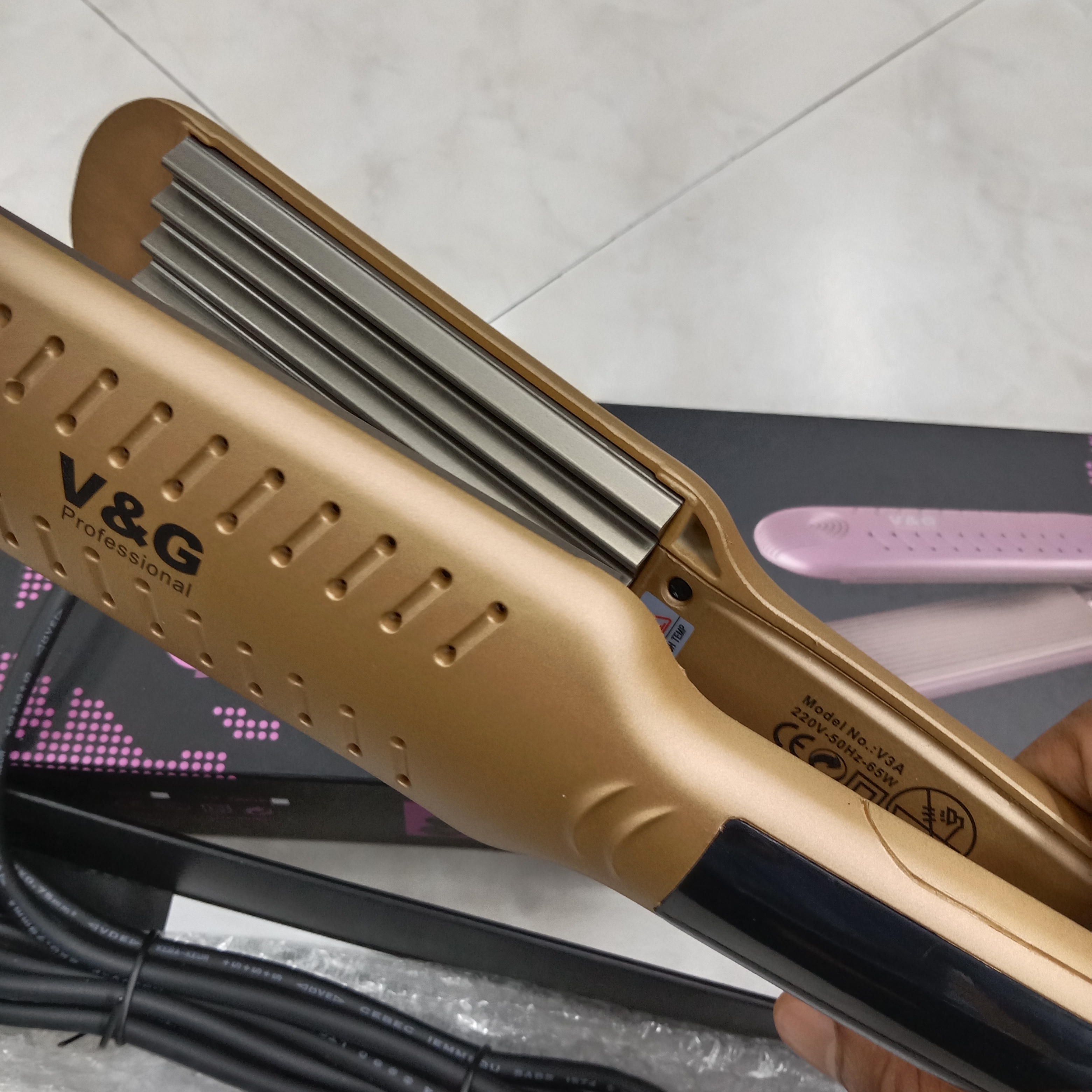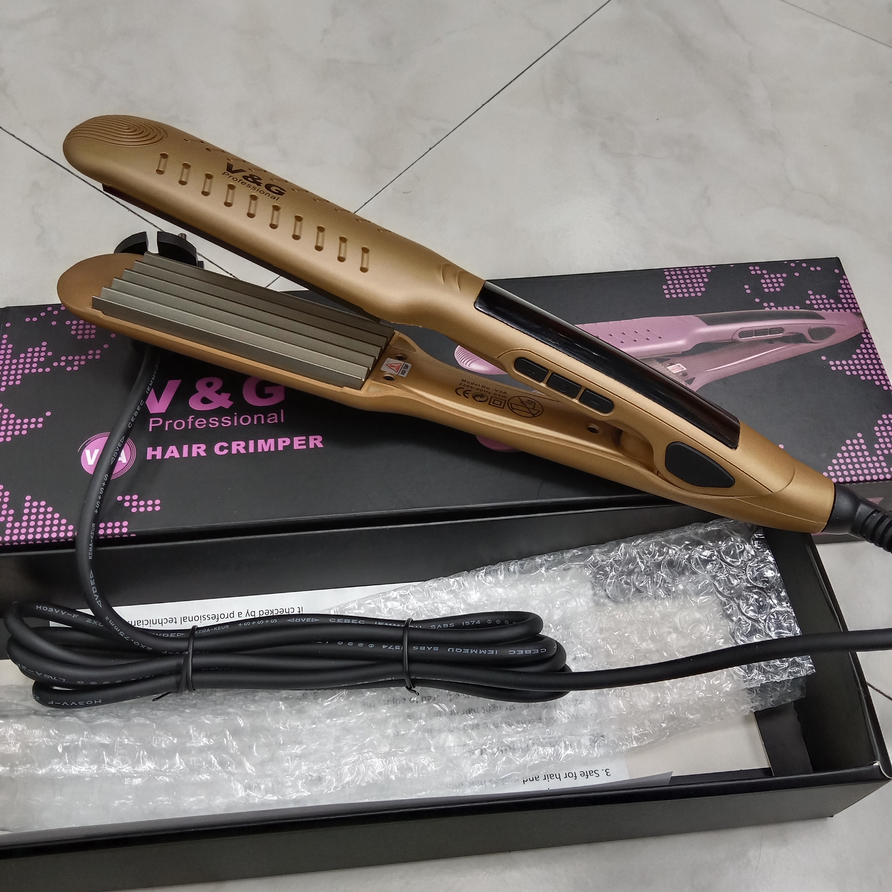 Unleash your creativity with the V&G Professional V3A Hair Crimper, the ultimate tool for achieving voluminous, textured styles with ease. Designed for professional-grade performance, this crimper features advanced ceramic plates that deliver consistent, gentle heat for long-lasting results. Perfect for adding volume, creating defined waves, or achieving unique crimped textures, the V3A ensures smooth operation and salon-quality results. With its rapid heat-up time and precise temperature control, the V&G Professional V3A Hair Crimper is your go-to tool for versatile and stunning hair styling.