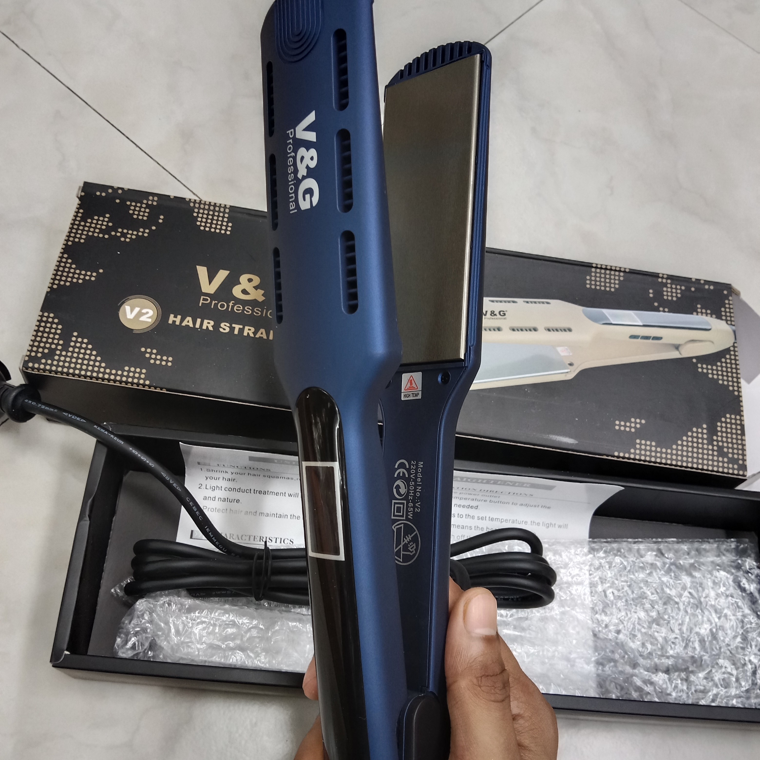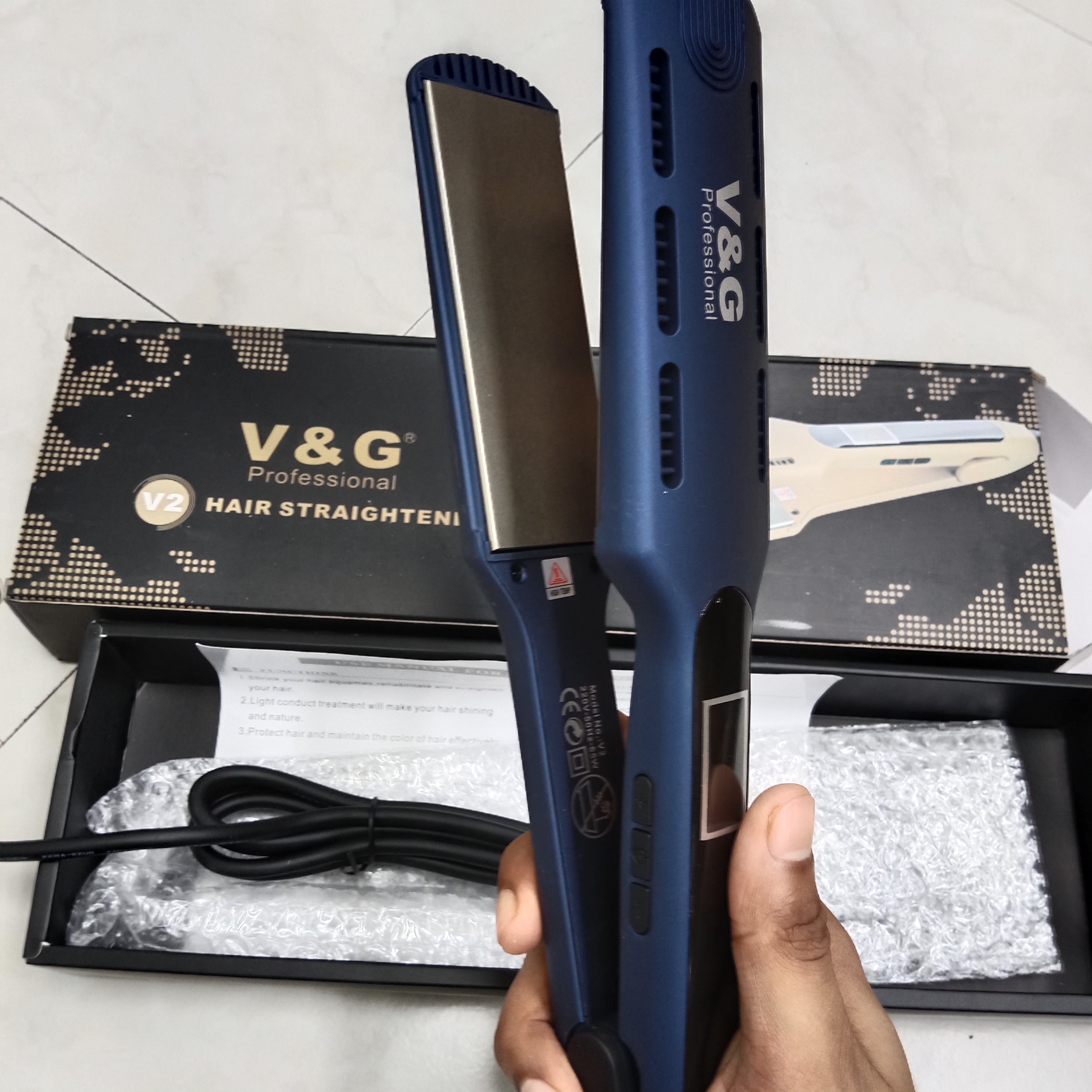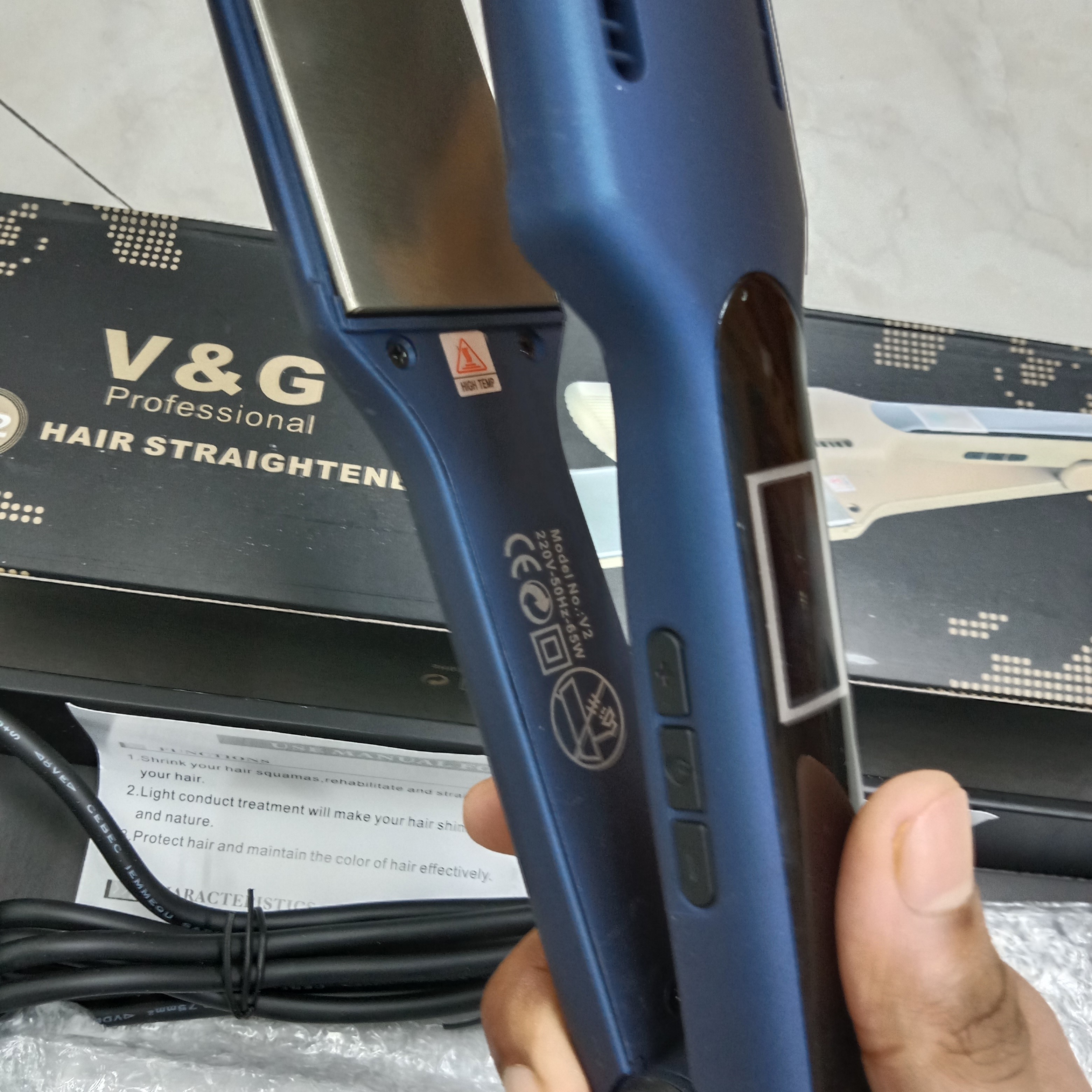 Transform your hair routine with the V&G Professional V2 Hair Straightener, a top-of-the-line styling tool designed to deliver salon-quality results in the comfort of your home. Featuring cutting-edge ceramic plates and advanced heat technology, this flat iron effortlessly glides through your hair, creating sleek, smooth styles while minimizing damage. Perfect for all hair types, the V2 ensures consistent heat distribution and long-lasting shine, making it an essential tool for achieving perfectly straightened hair or glossy, effortless waves.