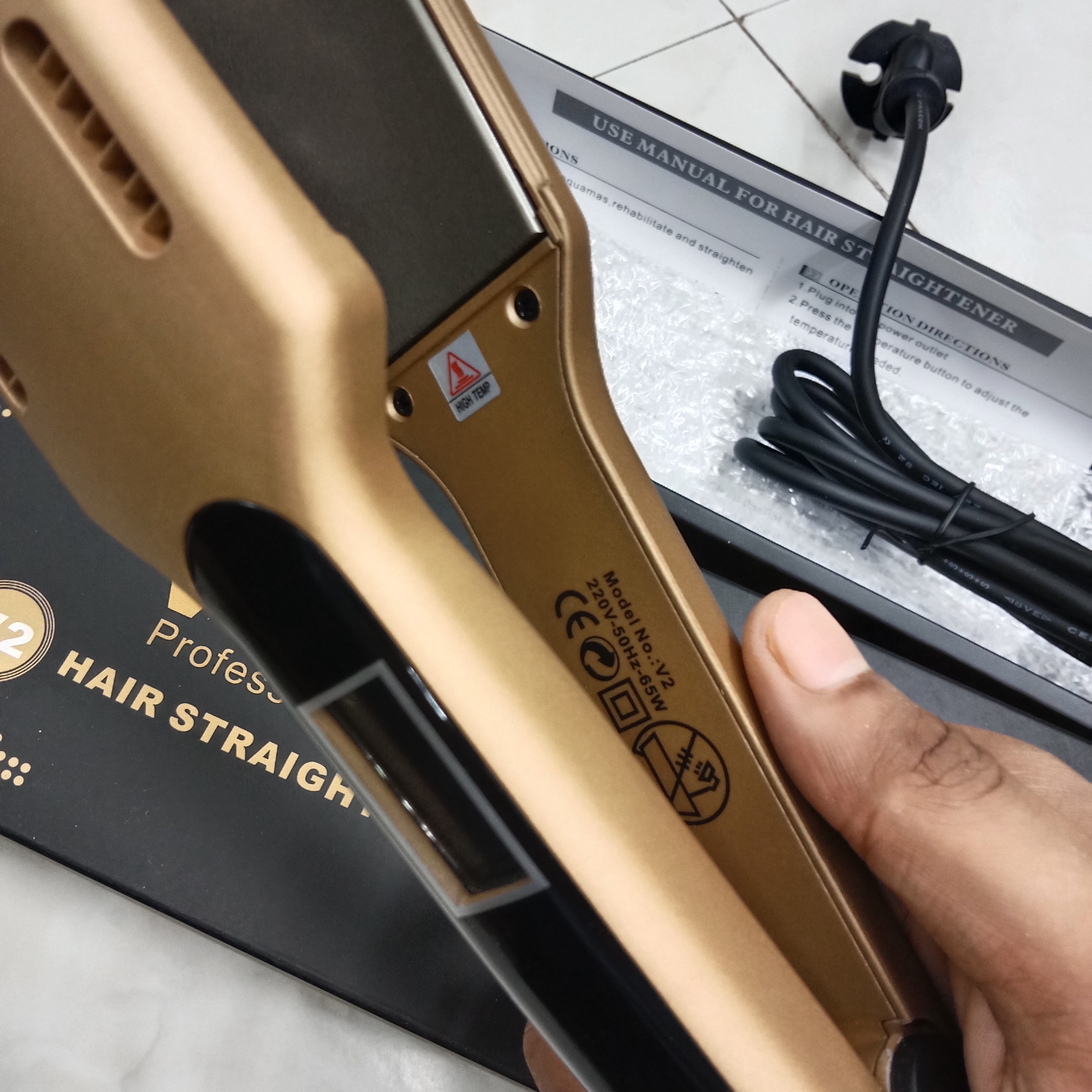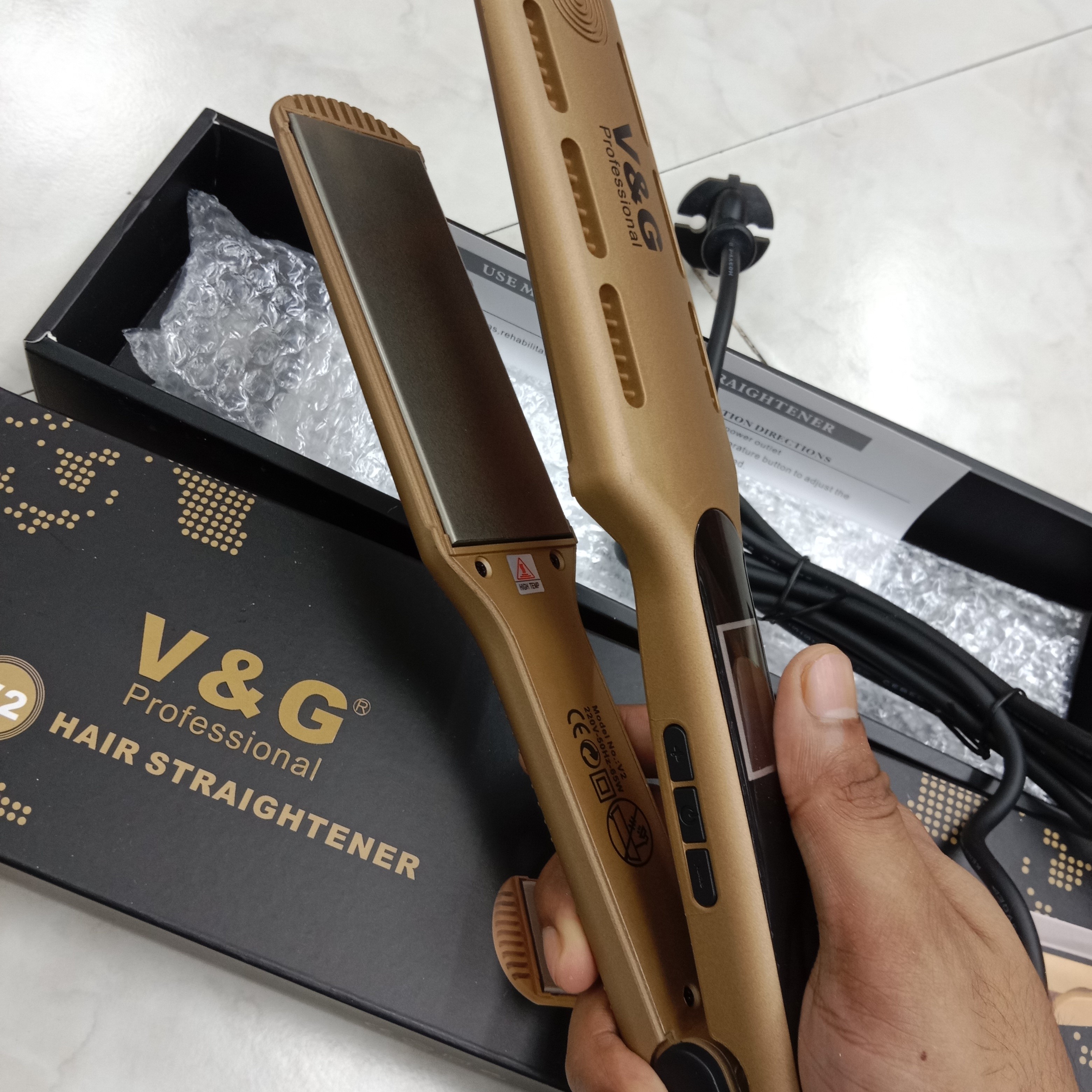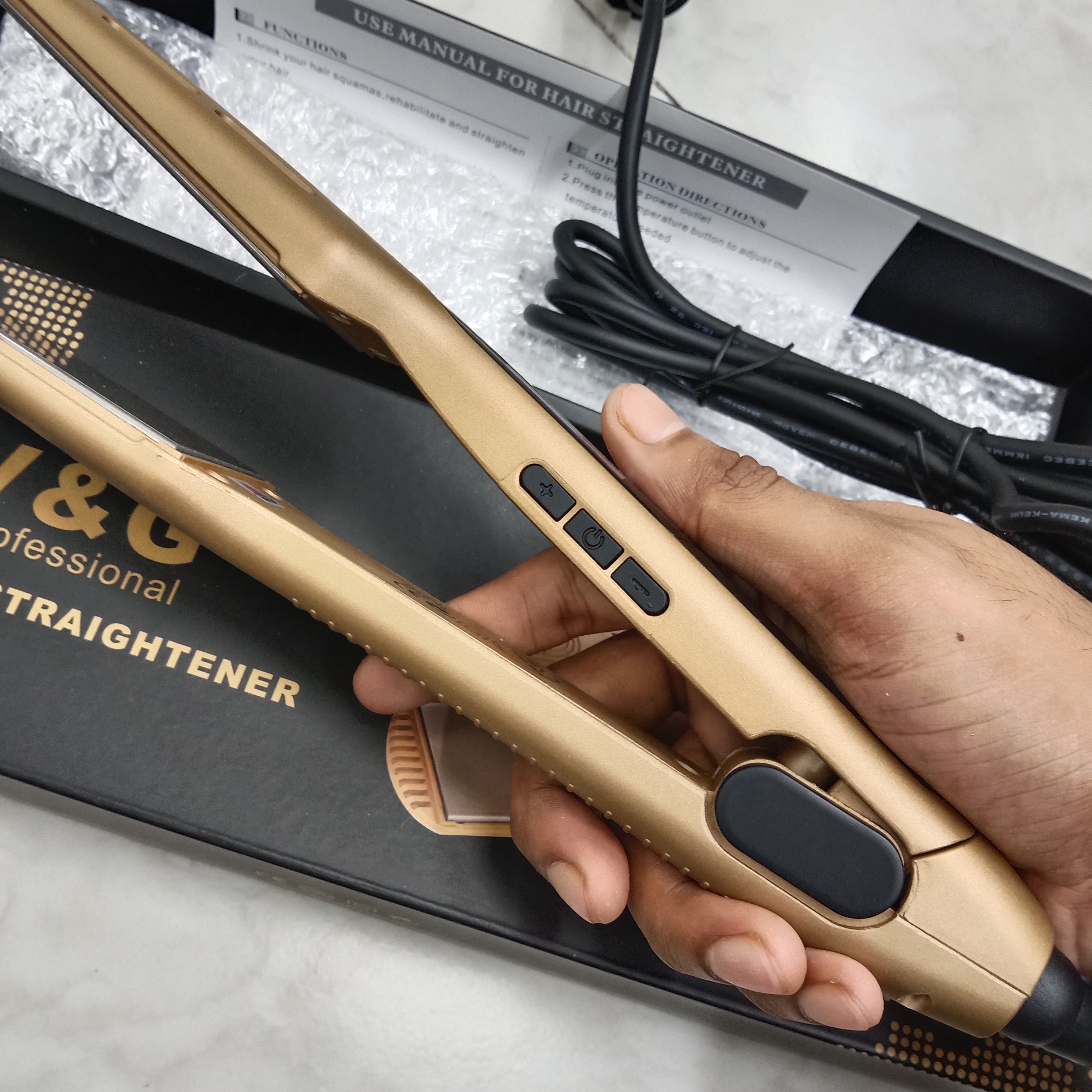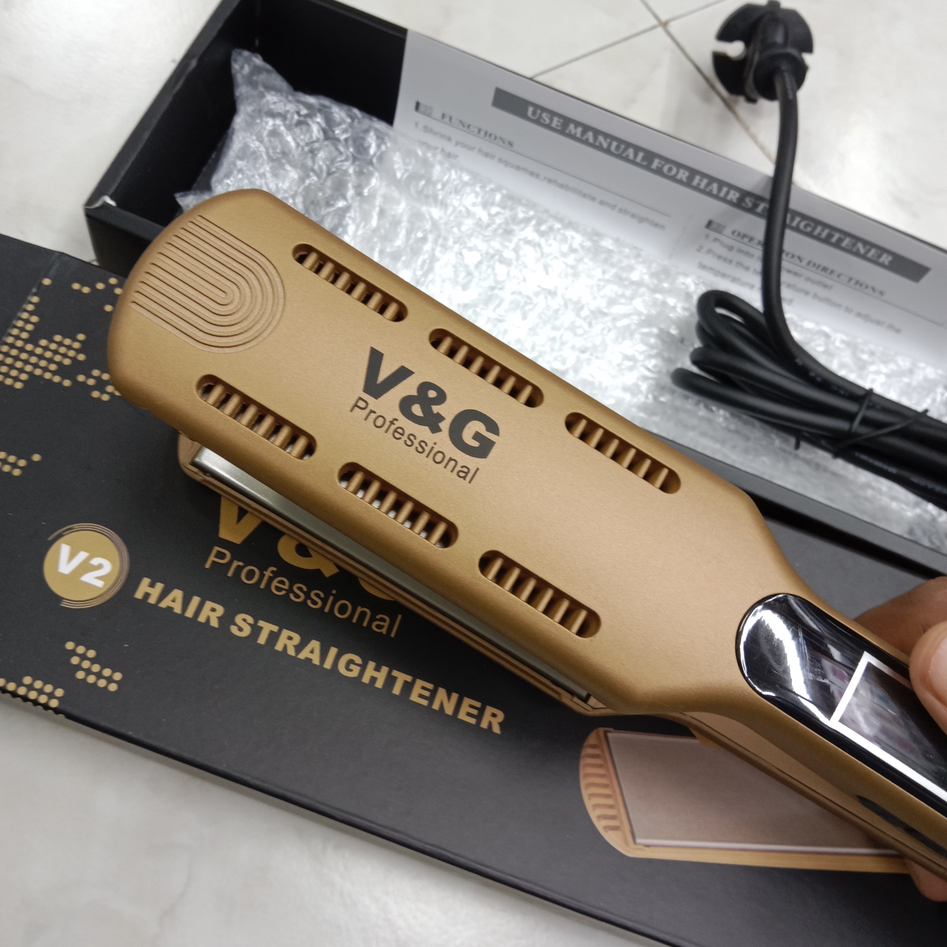 Transform your hair routine with the V&G Professional V2 Hair Straightener, a top-of-the-line styling tool designed to deliver salon-quality results in the comfort of your home. Featuring cutting-edge ceramic plates and advanced heat technology, this flat iron effortlessly glides through your hair, creating sleek, smooth styles while minimizing damage. Perfect for all hair types, the V2 ensures consistent heat distribution and long-lasting shine, making it an essential tool for achieving perfectly straightened hair or glossy, effortless waves.