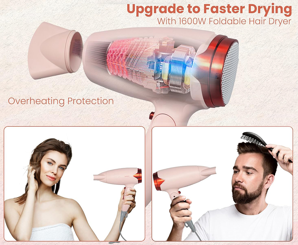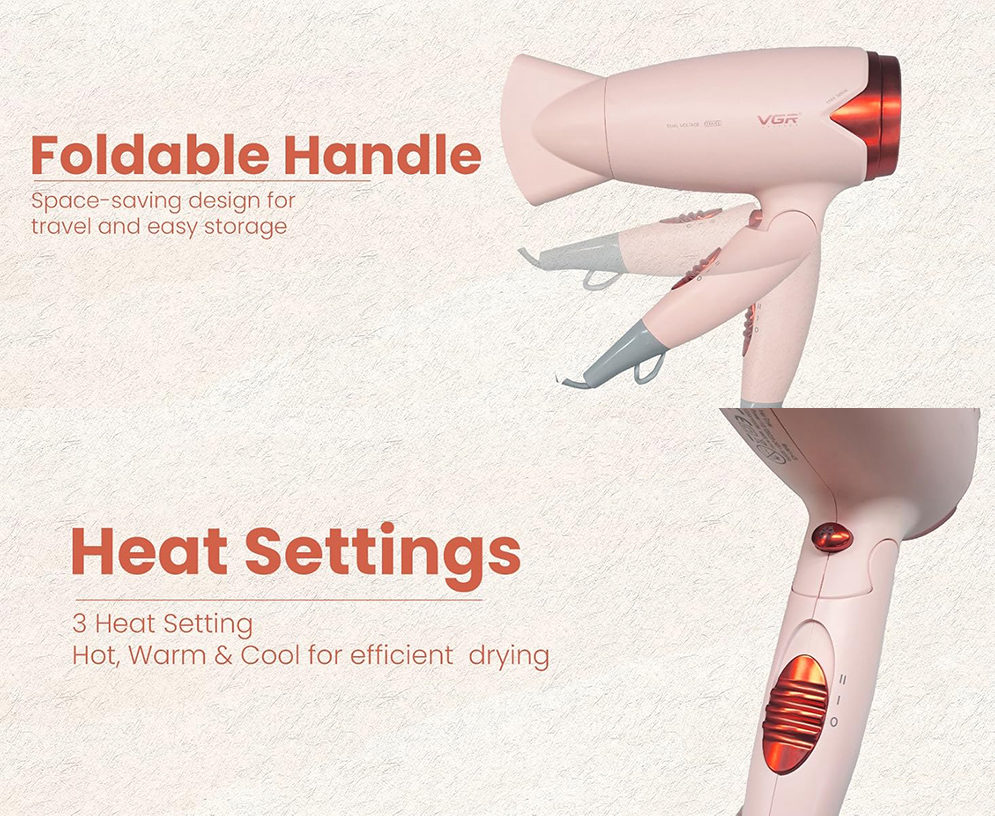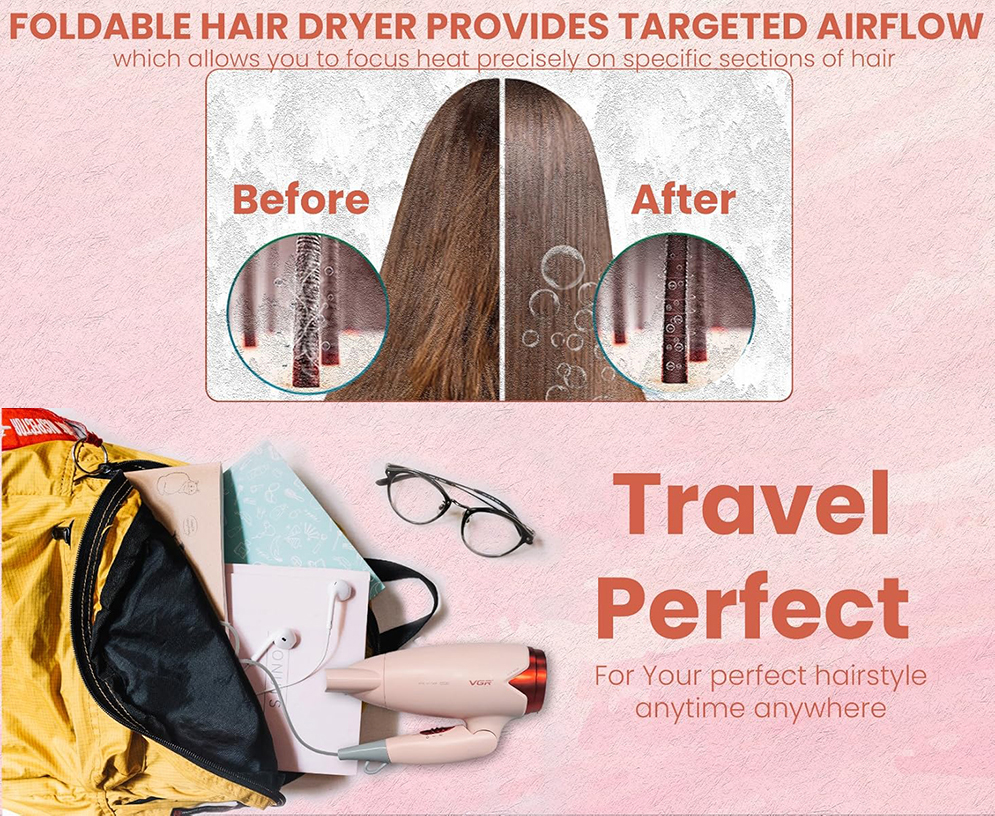 VGR V-428 Essential DryCare Compact Foldable Hair Dryer for Women