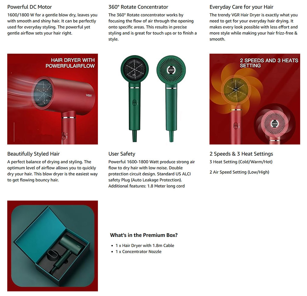 VGR V-431 Essential Care DryCare Hair Dryer Salon Series for Women