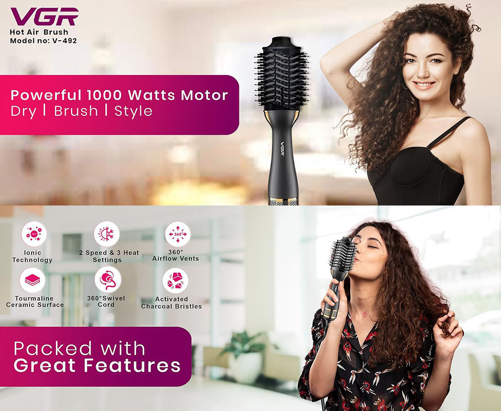 VGR V-492 Professional 3-in-1 Hot Air Brush, Styler, and Comb for Women