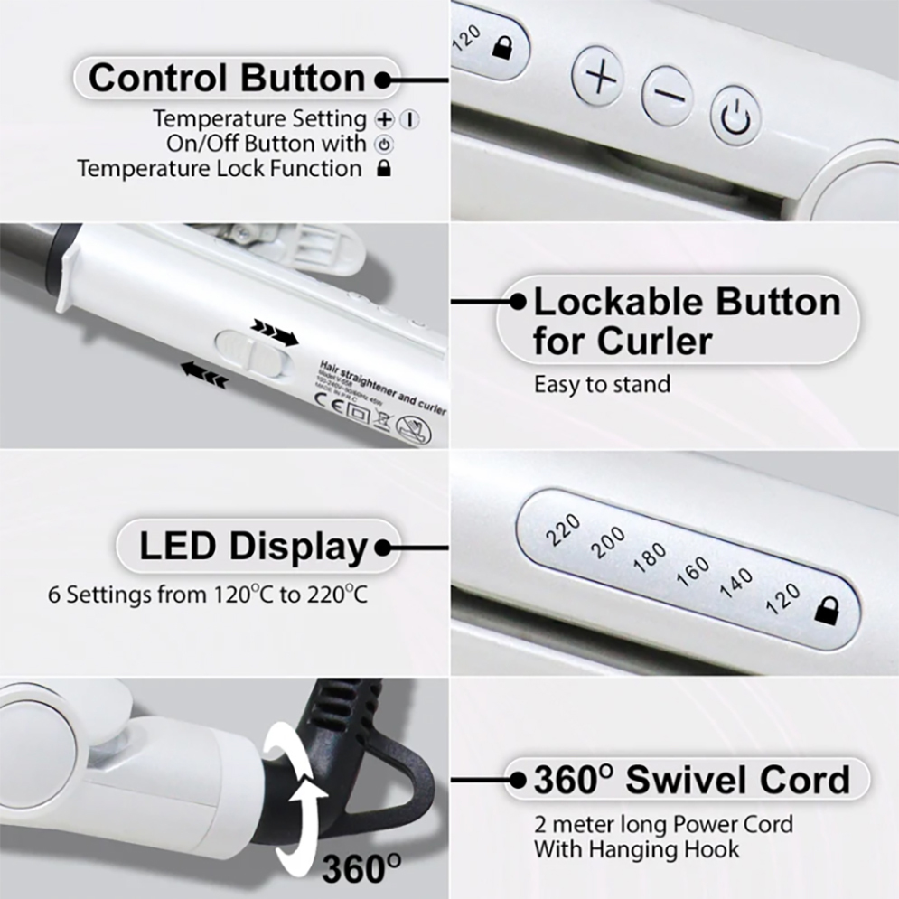 VGR V-558 StyleCare Essential 2-in-1 Hair Straightener and Curler with Negative Ions for Women