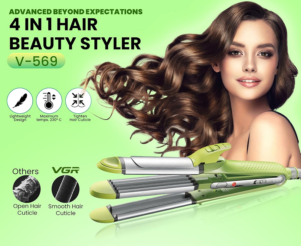 VGR V-569 Multi-Styler 4-in-1 Straightener, Curler, Crimper & Waver Salon Series for Women