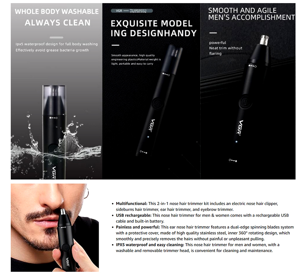 VGR V-613 Professional 2-in-1 Nose and Hair Trimmer for Men and Women