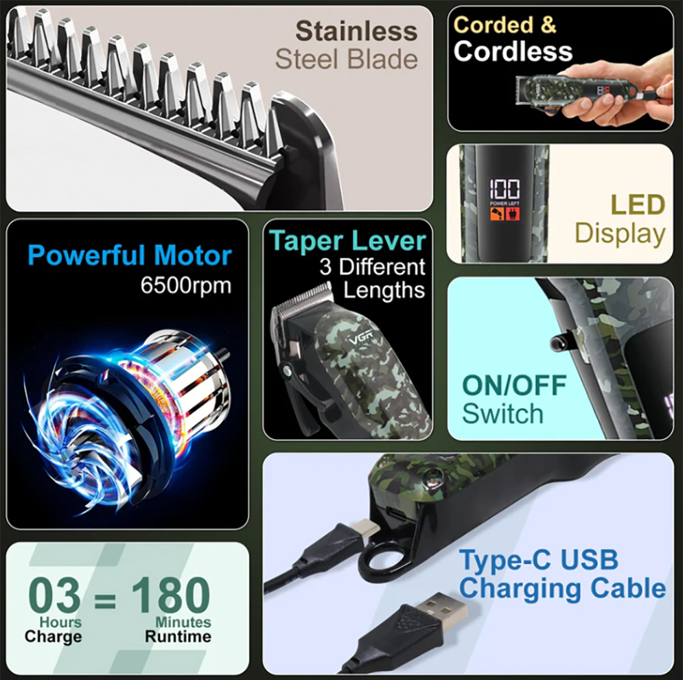 VGR V-665 Professional Hair Clipper and Beard Trimmer Salon Series for Men