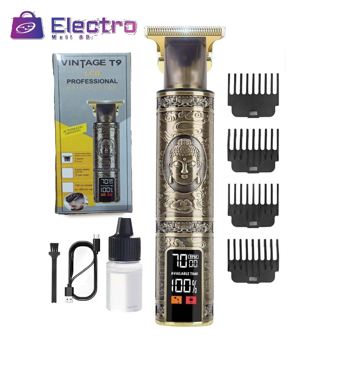 Step up your grooming game with the Vintage T9 Professional Hair Trimmer β a true masterpiece combining luxury design,