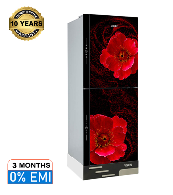 VISION Glass Door Refrigerator RE-142 Liter Red Flax Top Mount
