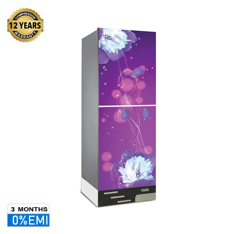 VISION Glass Door Refrigerator RE-217 Liter Purple Peony Top Mount