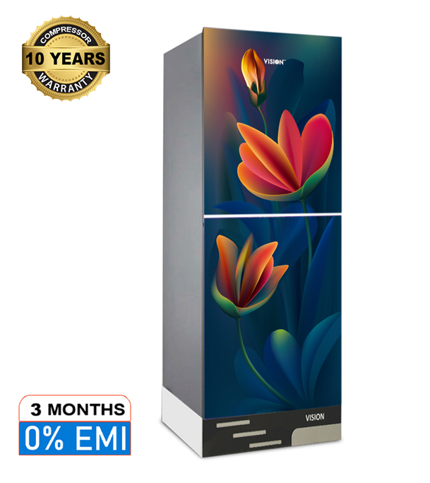 VISION Glass Door Refrigerator RE-252 Liter Anemone Red Bottom Mount