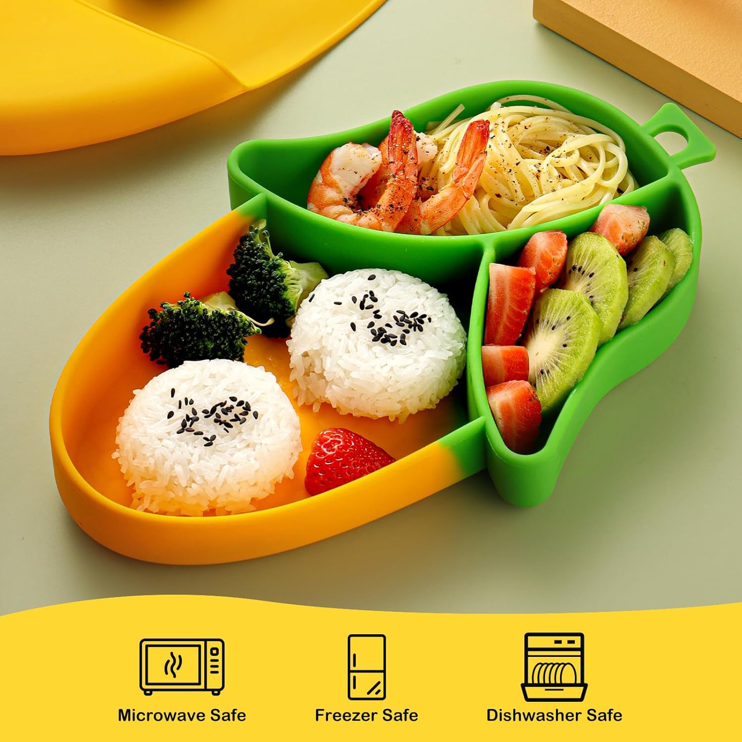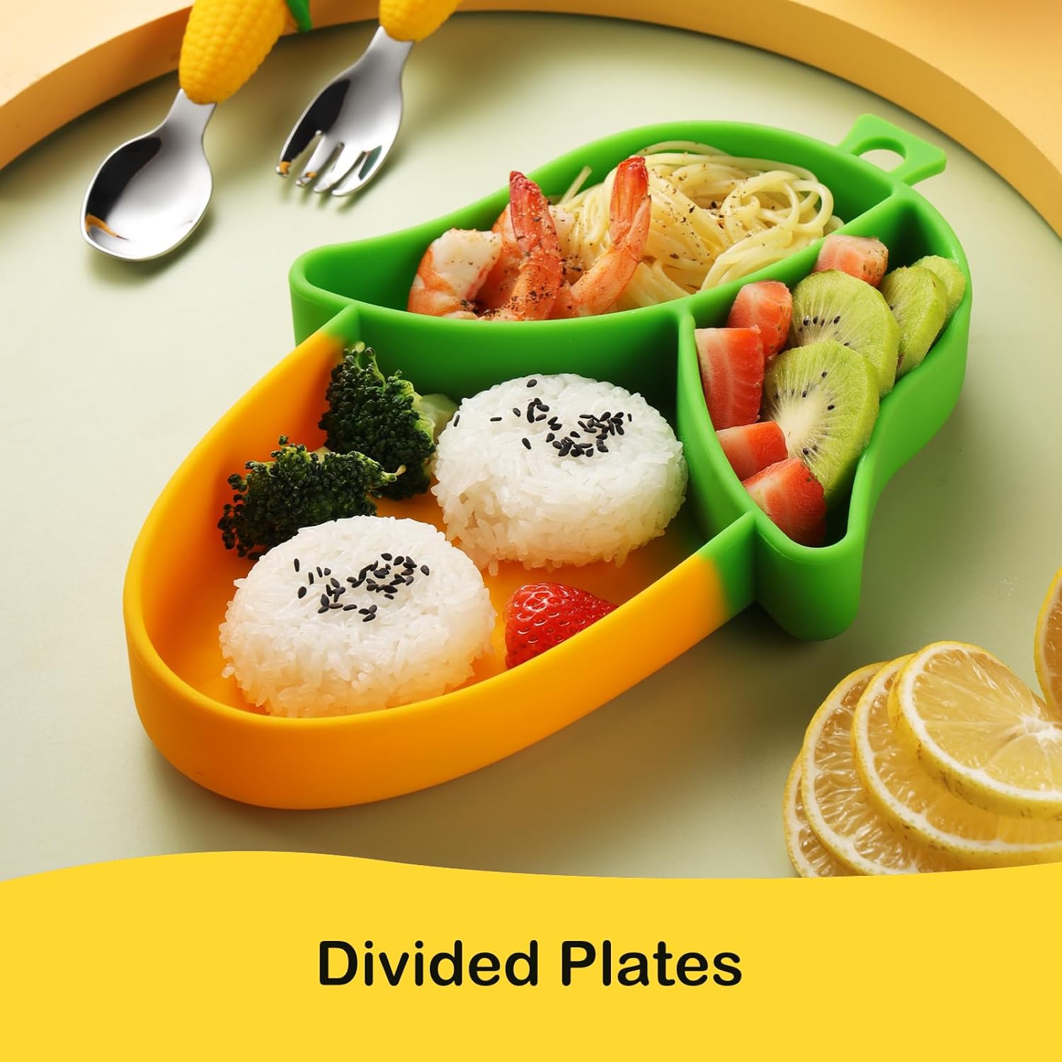 The silicone toddler plates has three dividing grids which can place different foods separately to avoid food mixing allowing babies to try a variety of flavors and develop eating habits.