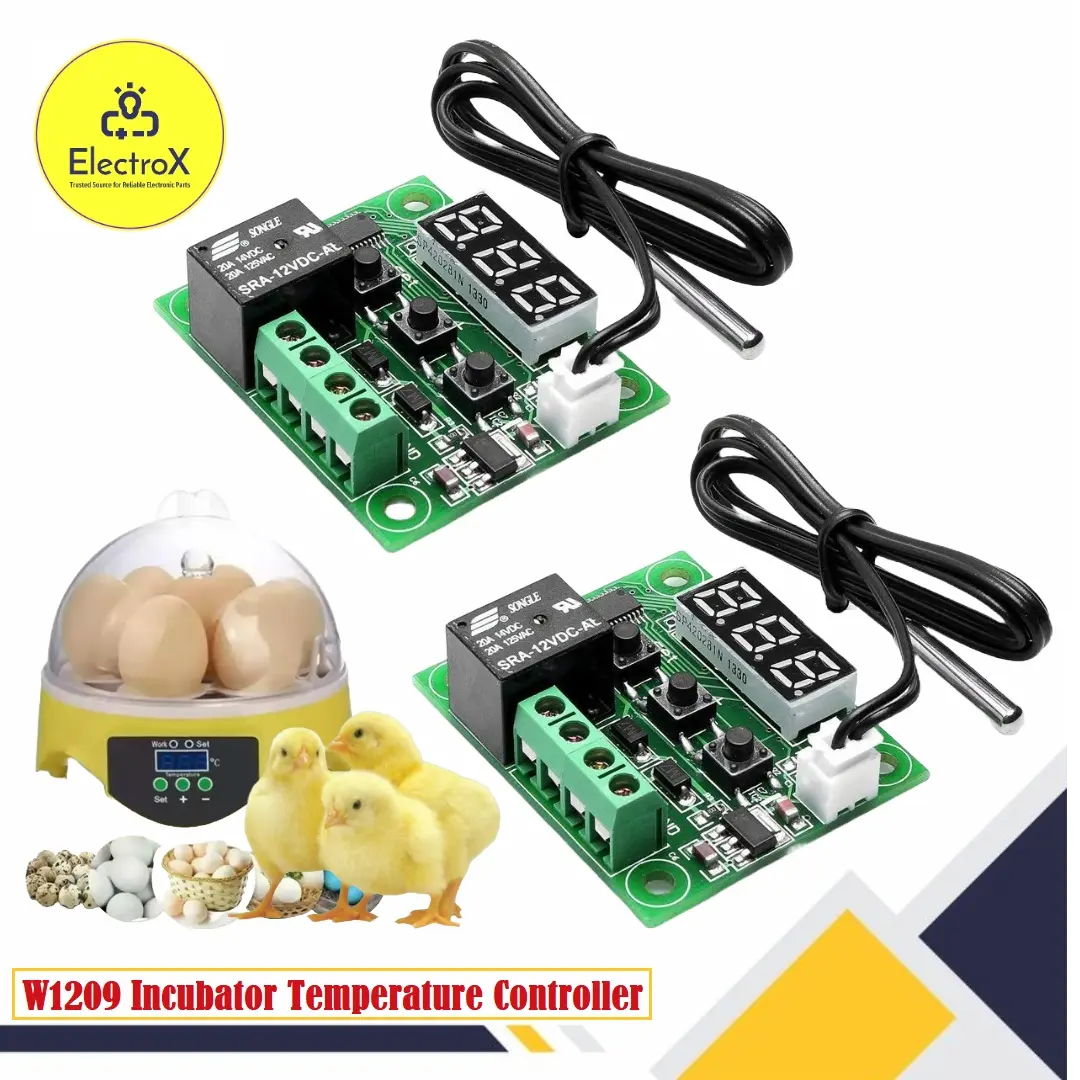 NTC temperature sensor allows the module to intelligently control varied electrical devices based on the temperature. NTC thermistor has a negative temperature coefficient, which means the resistance decreases with increasing temperature. The relay can operate at voltages up to a maximum of 240V AC at 5A or 14V DC at 10A to power on. The temperature is displayed in degree centigrade and with the help of 7-segment display and the relay, the state is displayed with the help of the LED present on the W1209 module. Indicator: off indicates the relay is switched off; always indicates the relay is closed. LED: shows ll means the sensor opens; shows hh means it s out of range, the thermostat will be forced to close the relay, the display as high temperature protection. Temperature range: 50~110 and deg; c resolution: 0. 1 And deg; c(9. 9~99. 9 And deg; c), 1 and deg; c(other ranges) accuracy: 0. 1 And deg; c refresh rate: 0. 5S high temperature protection: 0~110 and deg; c input power: DC 12v static current: and le; 35ma, attract current: and le; 65ma measurement input: ntc(10k 0. 5 Percent) waterproof type sensor output range: 1 channel 10a relay output environment: 10~60 and deg; c? Humidity: 20 percent 85 percent model: wh w1209 size: approx. 48X40x15mm specification: how to use: connect the power supply and the load, then you can supply to the controller. It displays the measured temperature, press set key, the display temperature flashing, press plus to set the desired temperature. After finished, press set to confirm and back. Now the controller automatically performs the relay by setting off. This temperature controller output is 10a relay, meeting various high power loads, please make sure the wires are connected correctly. Package includes: 1x digital temperature control.