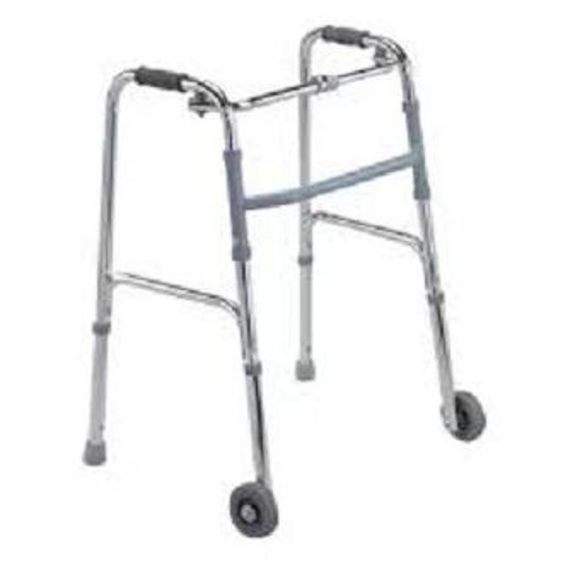 Rolling Walker - Extra Wide. Heavy duty 650 lb. weight capacity. This double button Folding Walker has dual 5" front wheels and swivel caster back wheels for added stability and safety, it only weights 14 lbs. This is a medical walker that fits over the toilet and folds for easy storage in trunk, back seat or closet.