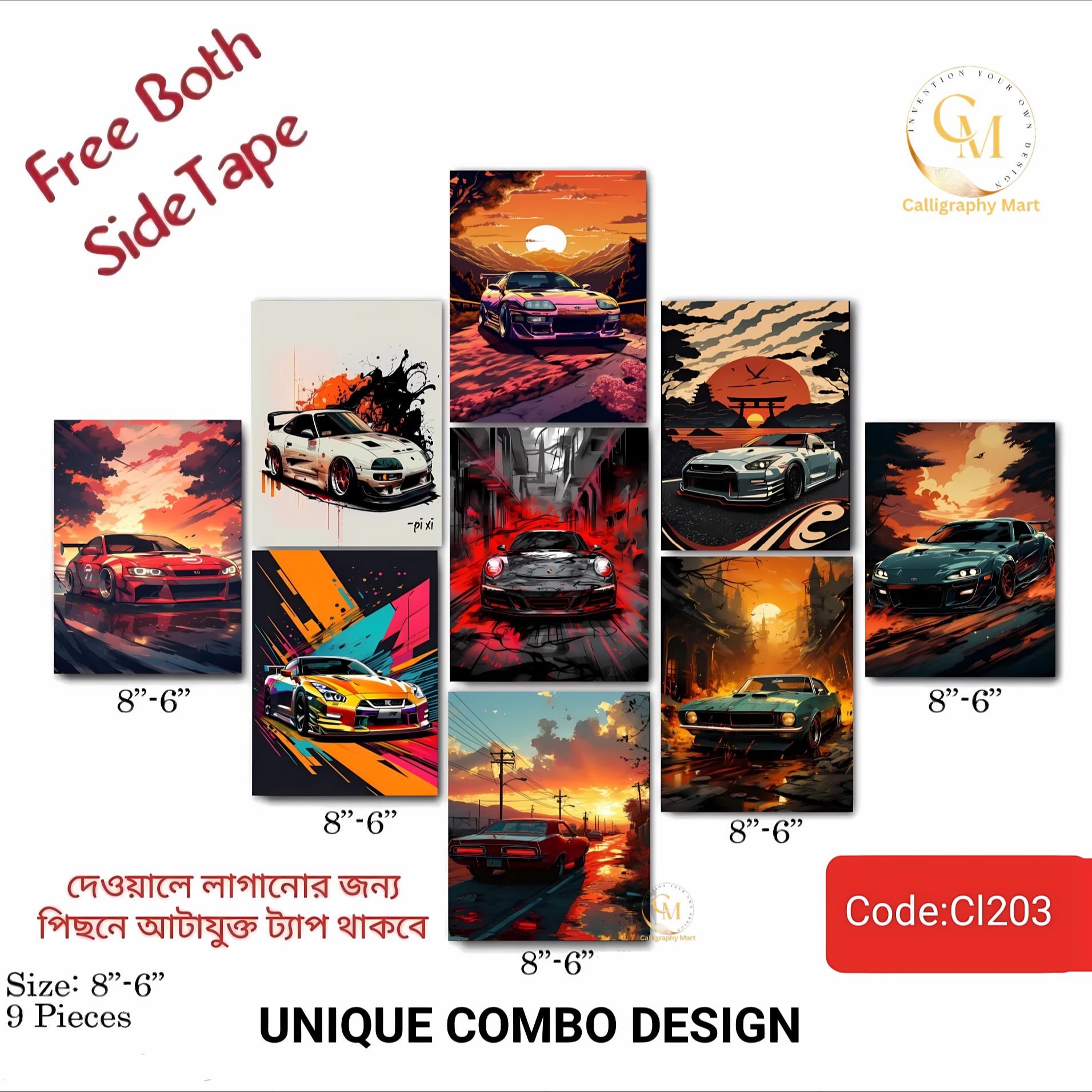 Product details of Wall decoration 9pcs Unique Design wallmate Home Decoration poster on PVC Combo Set