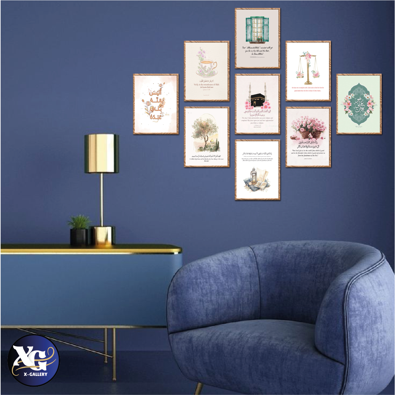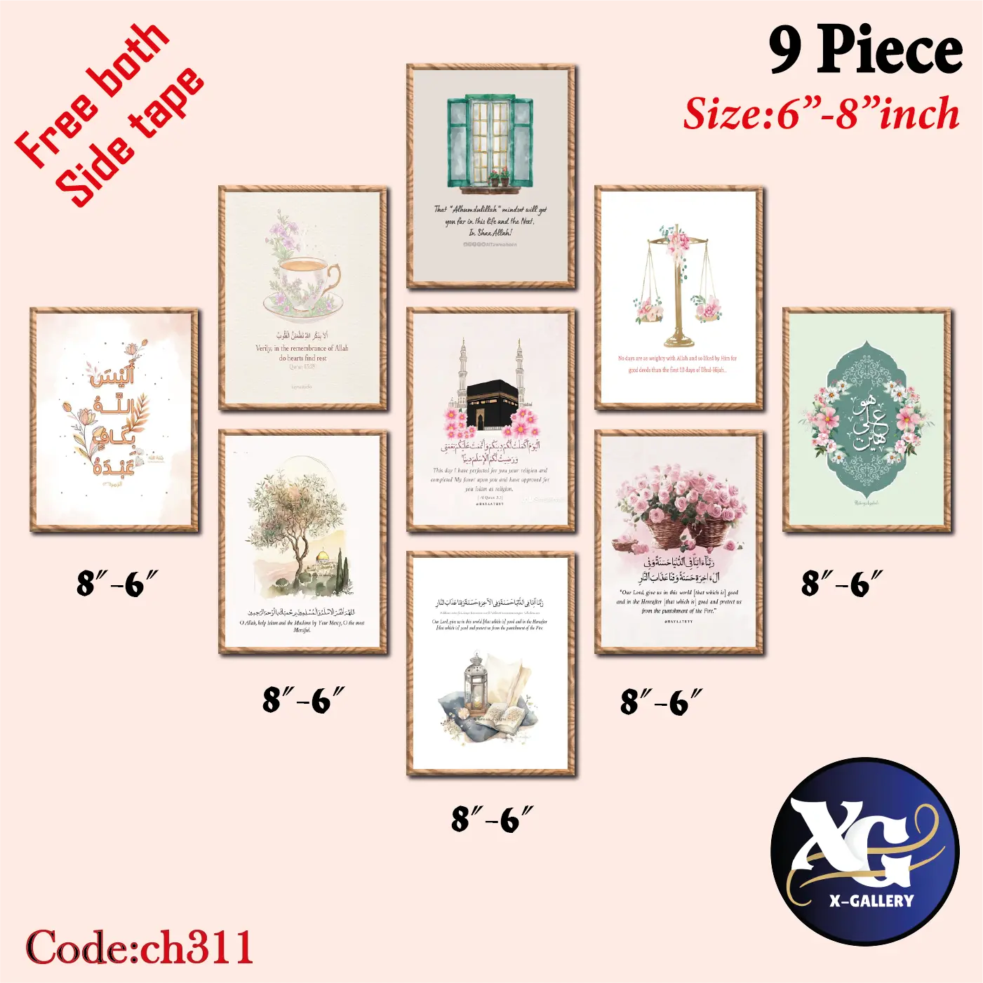 Wall decoration items PVC board poster 9 pcs Isalmic Calligraphy Wallmate Combo Set