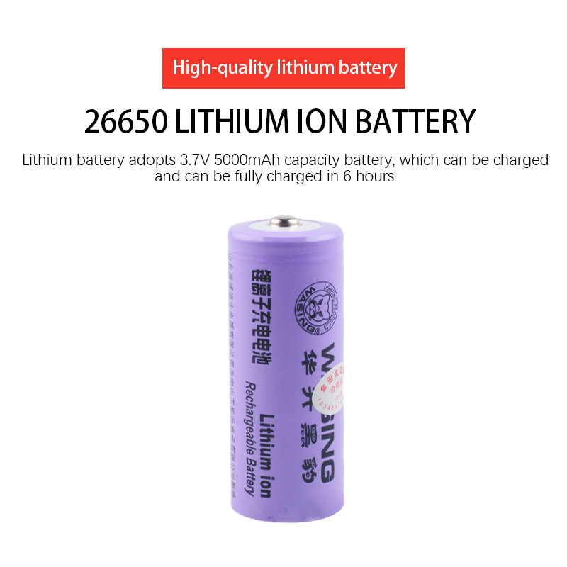 - WASING 26650 3.7V 5000mAh high drain lithium-ion rechargeable battery delivers strong current output for torches and flashlights. Durable performance, long runtime, stable voltage supply and dependable repeated charging cycles.