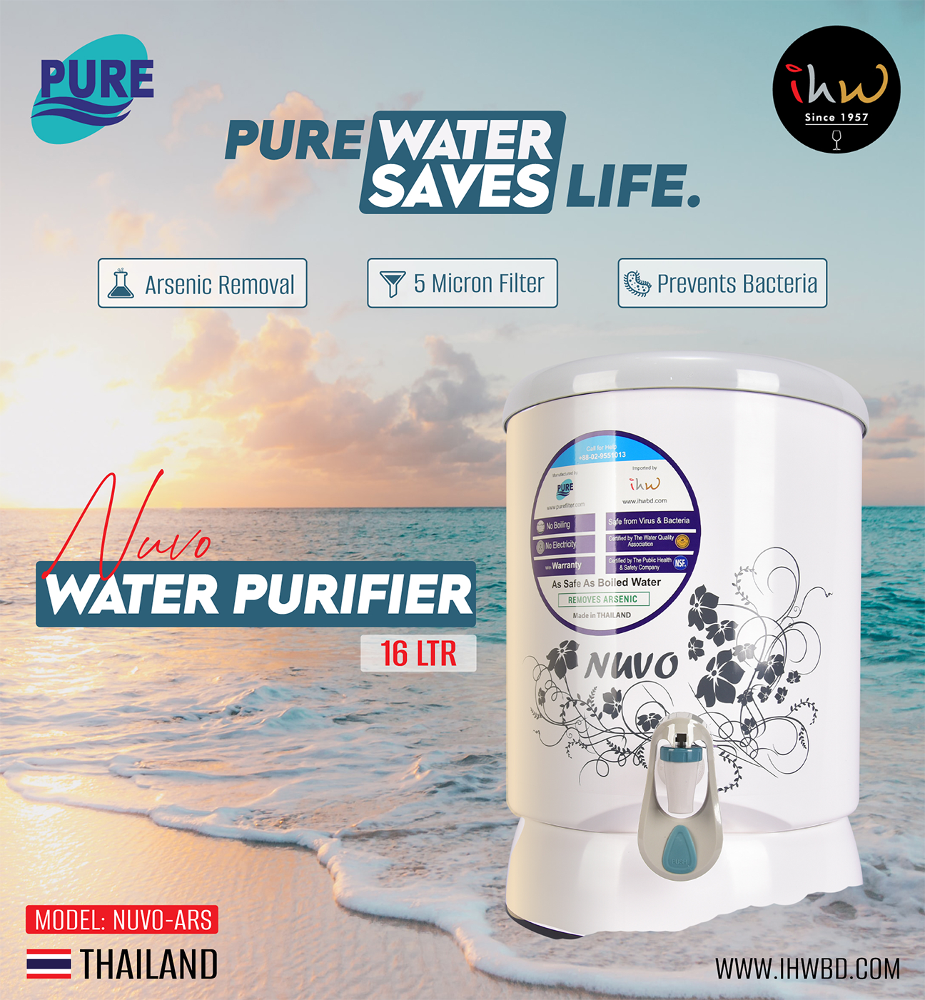 At International Homeware, we understand the importance of safe drinking water. That’s why we bring you authentic Pure Nuvo-ARS purifiers with advanced technology and full product support. Order today and protect your family's health with one smart solution—trusted, tested, and delivered by IHW.