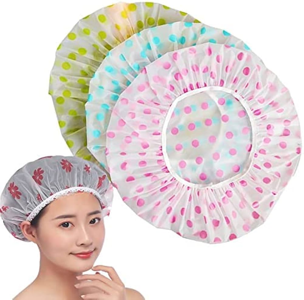 Waterproof Shower Cap Point Bath Hair Cover Elastic Bath Hat Bathing Cap for Women Bathroom Reusable Shower Hat 2Pcs