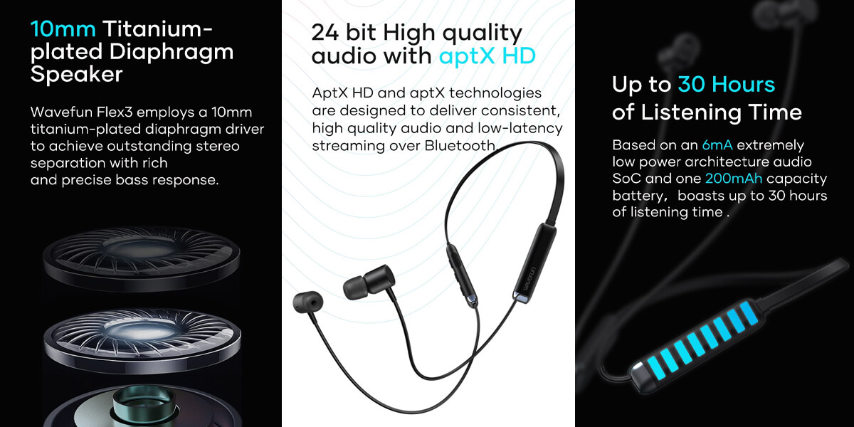 - Flexible Neckband – The flexible neckband is easily compact with your neck, it’s super light, especially suitable for sports.