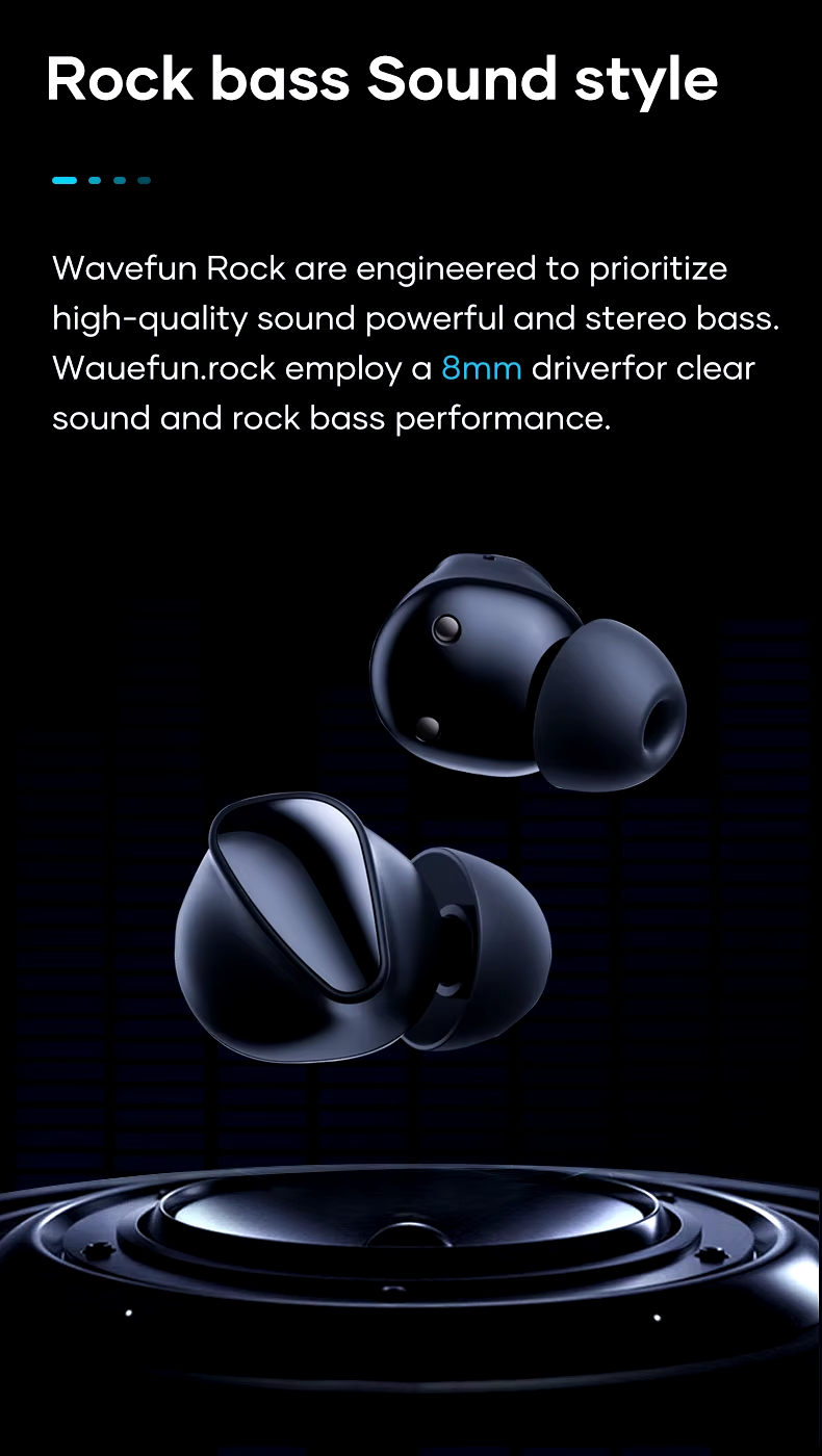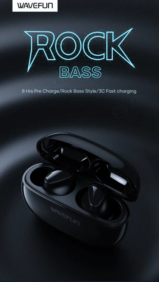 The Wavefun Rock Super Bass TWS Earbuds are a pair of black-colored earbuds that offer a comfortable and secure fit for extended listening sessions. They are designed to deliver high-quality sound and convenient features for a hassle-free listening experience. The earbuds feature 10mm dynamic drivers that produce clear and powerful sound, with a frequency response range of 20Hz to 20kHz. They also support Bluetooth 5.0 connectivity, which provides stable and reliable wireless connectivity with your devices.