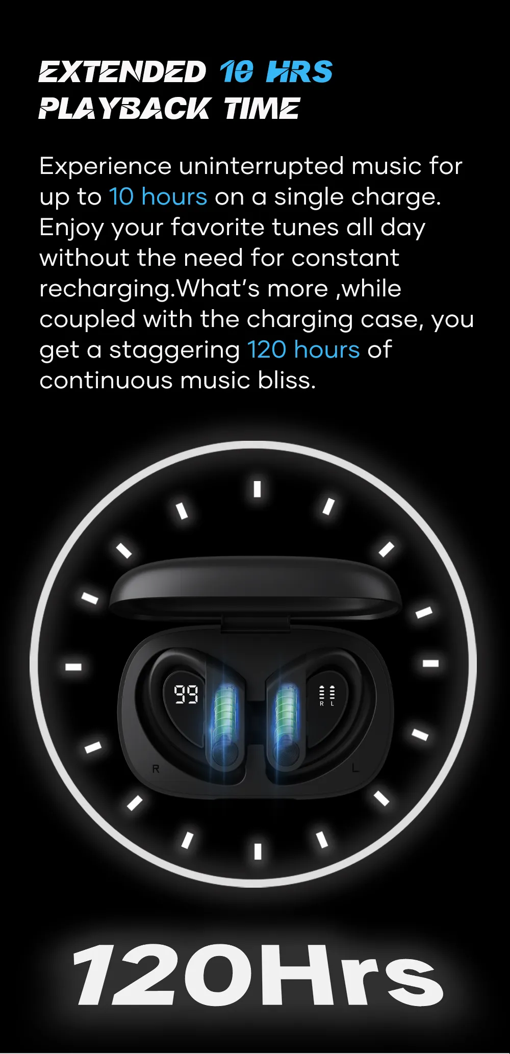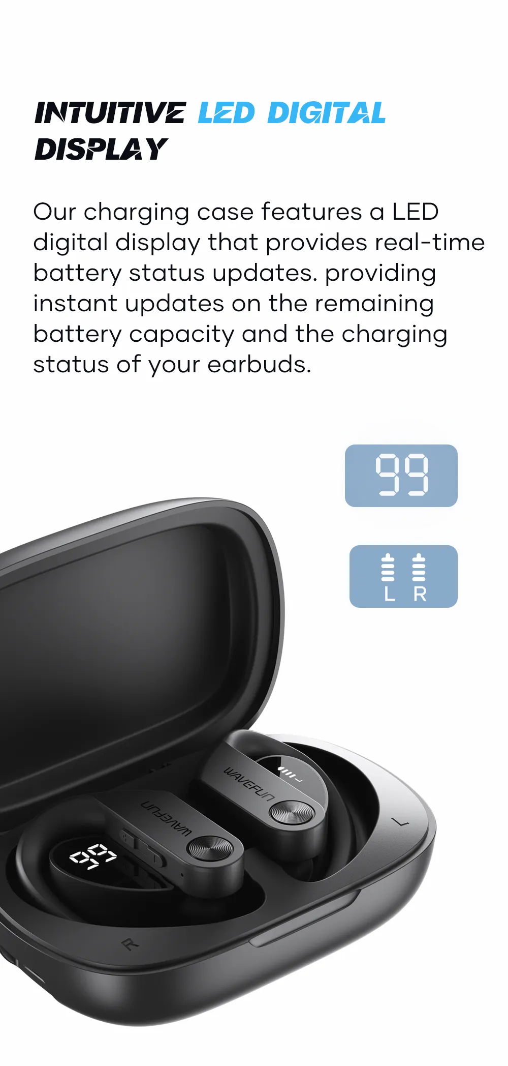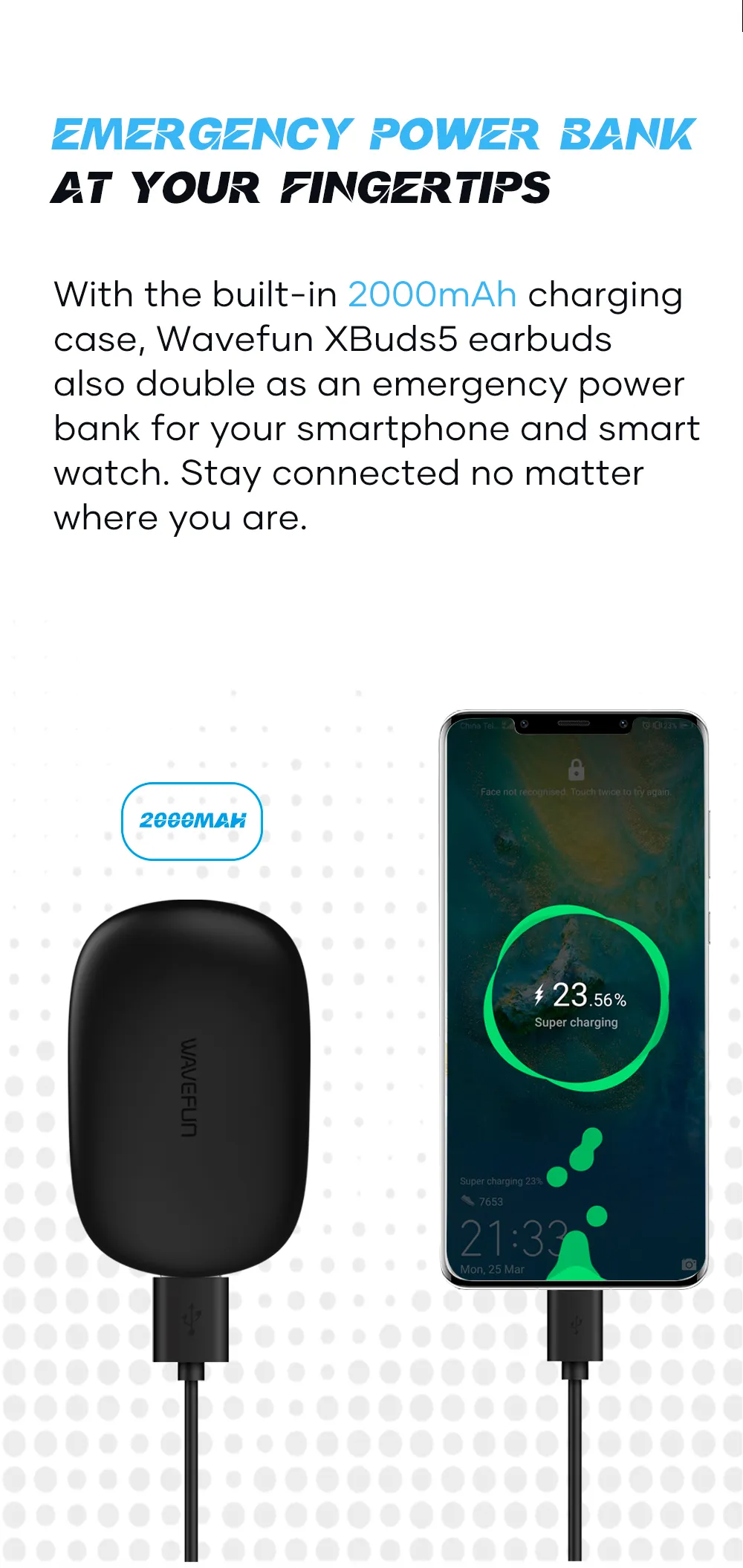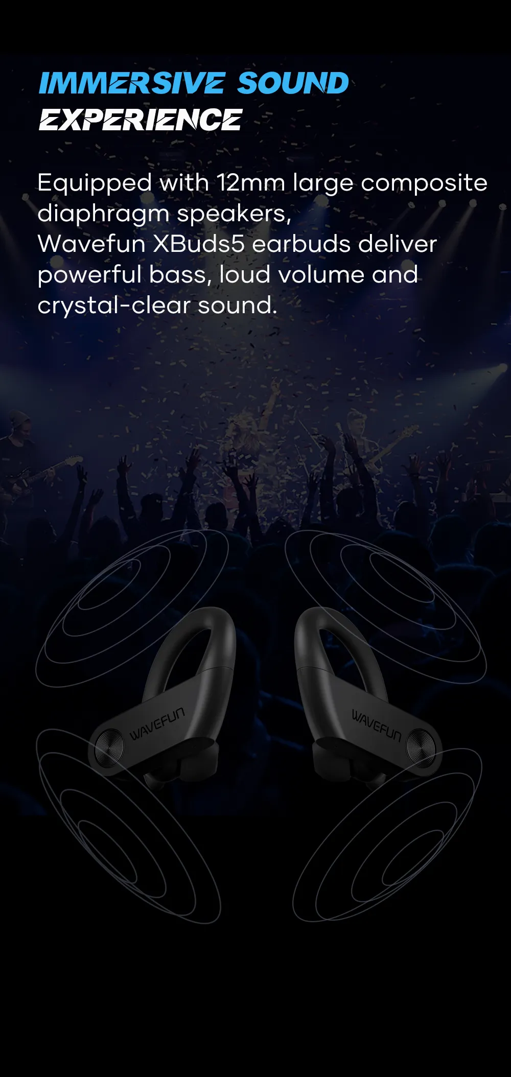 Wavefun XBuds 5 Wireless Earphone with Ear Hook IPX8 Waterproof 2000mAh Charging Case with Power Bank Function BT5.3 Workout Outdoor Headphones